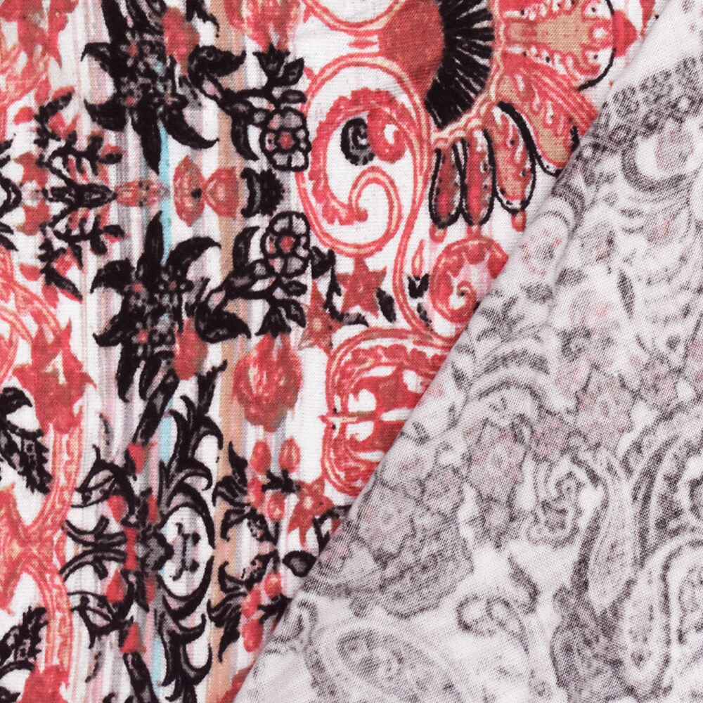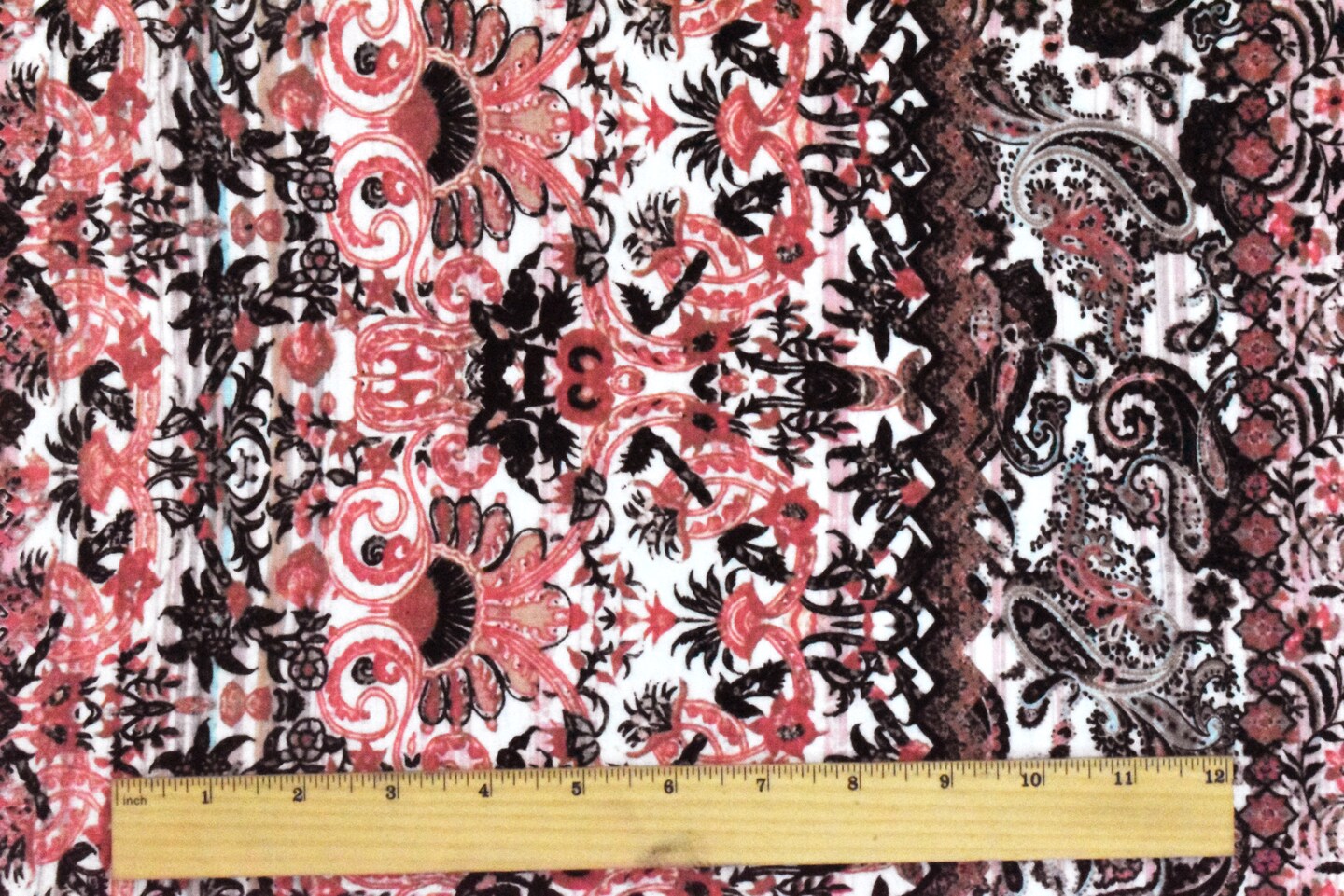 Pink-White-Multi Baroque Stripe Printed Rayon Stretch Jersey Knit Fabric By the Yard