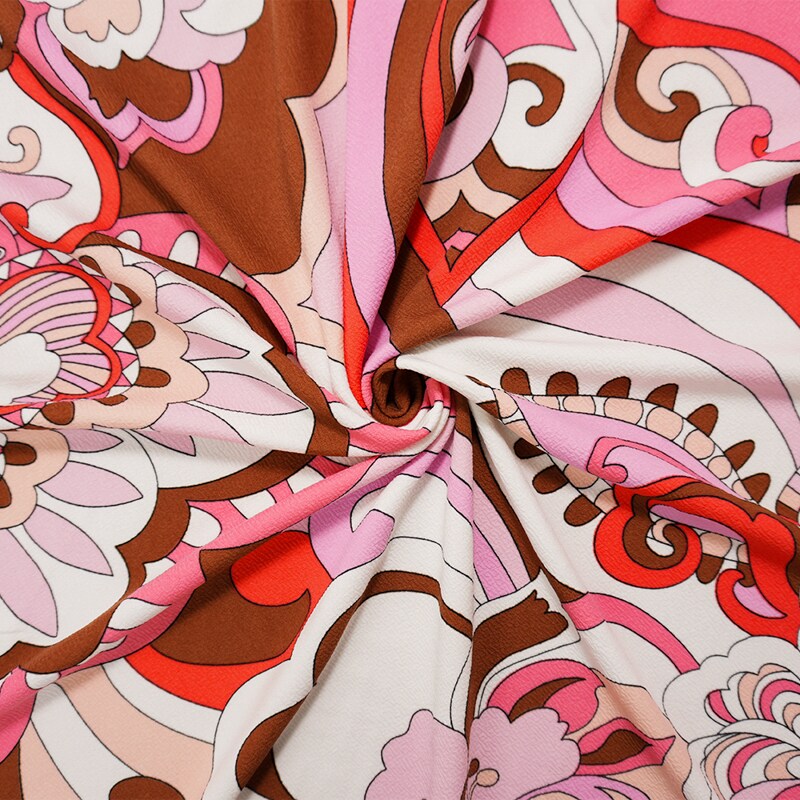 Pink-White-Multi Poly Floral Print Liverpool Double Knit Fabric By the Yard