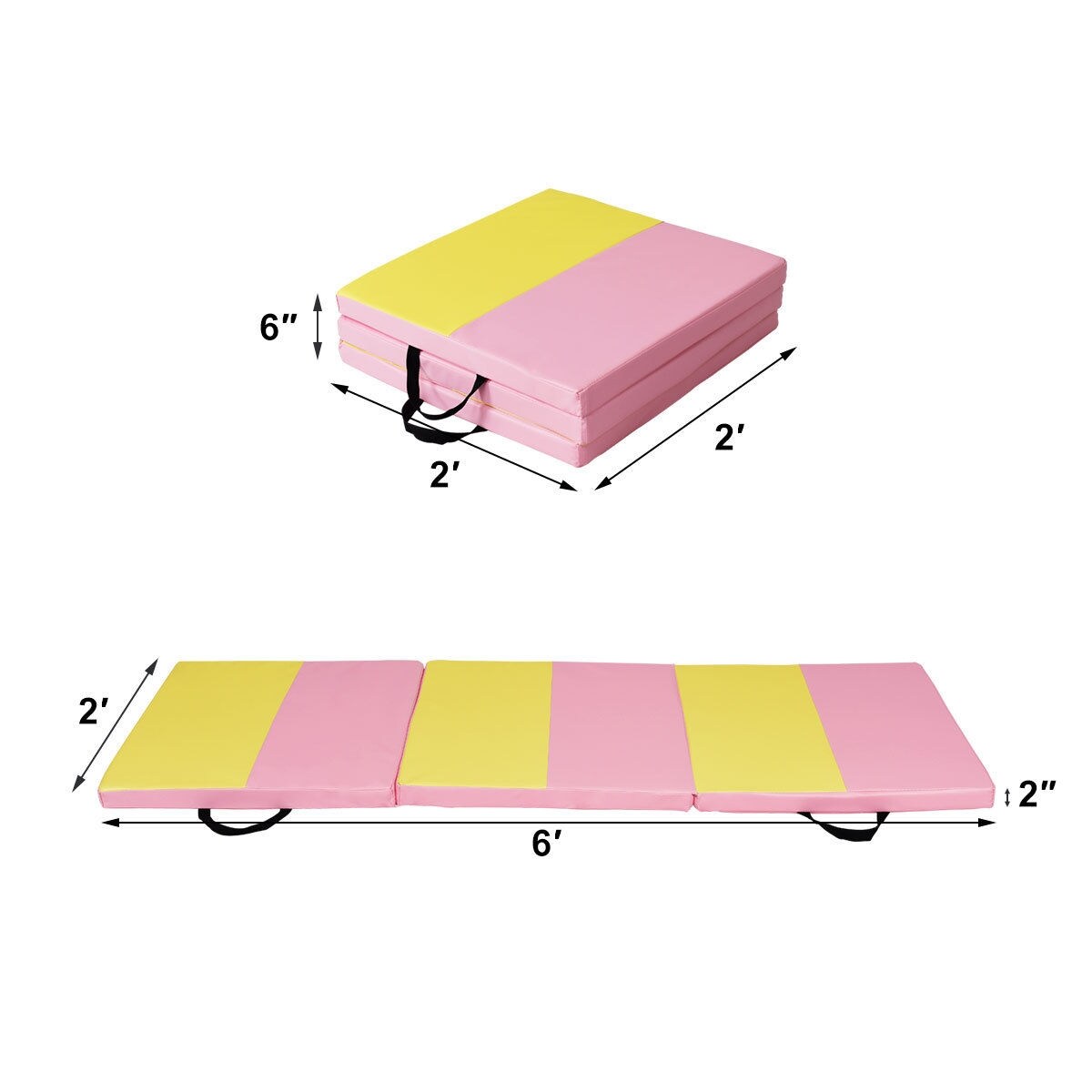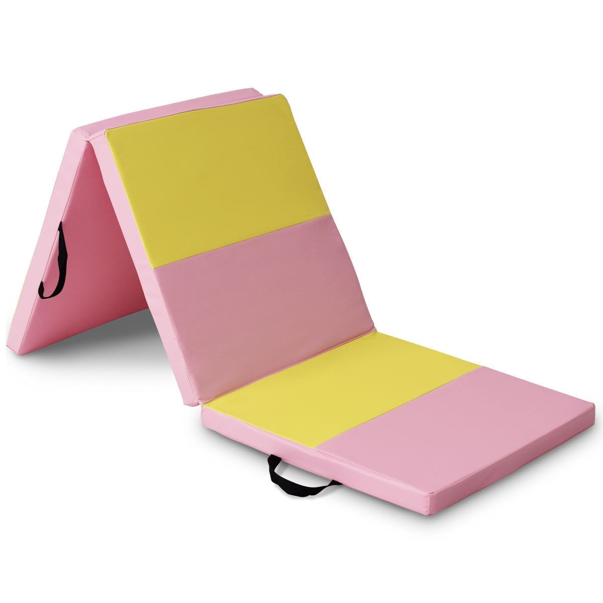 Pink-Yellow Leather Gymnastic Mat Tri-Fold Foam Yoga and Exercise