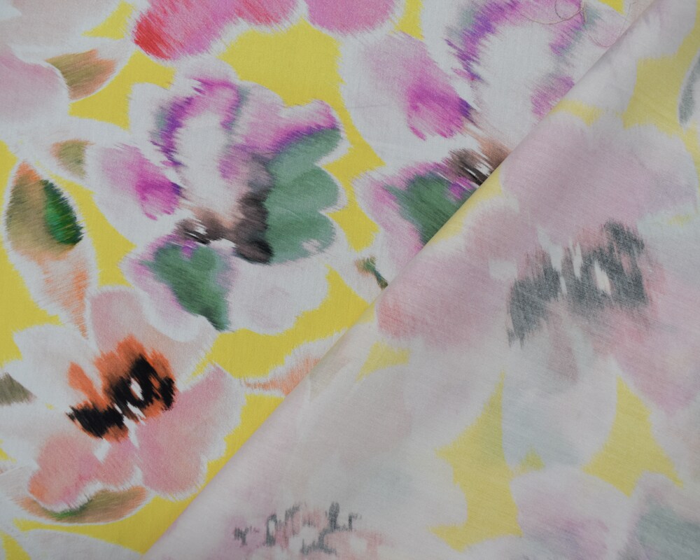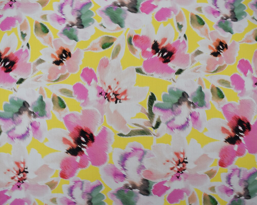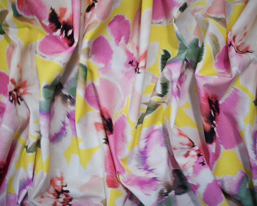 Pink-Yellow-Multi Cotton Floral Printed Broadcloth Woven Fabric By the Yard