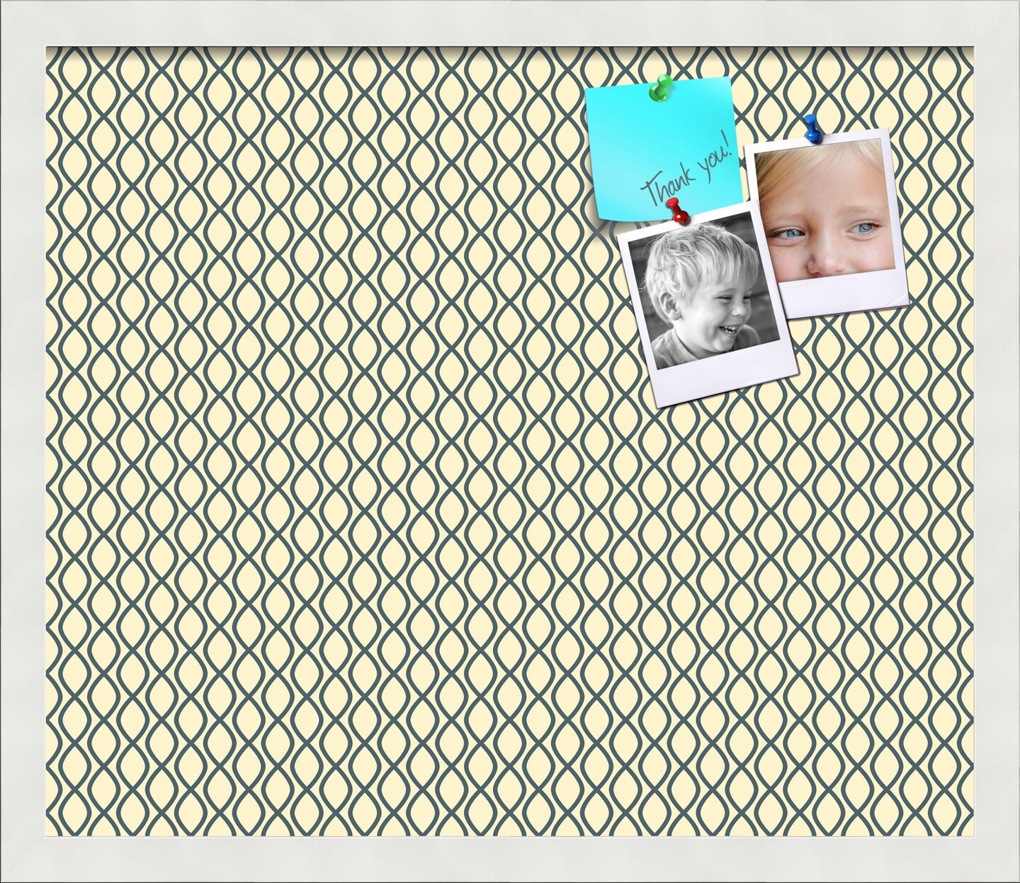 PinPix Custom Bulletin Board Yellow And Blue Waves Poster Board Has a Fabric Style Canvas Finish, Framed in Satin White Frame, by ArtToFrames (PinPix-321)