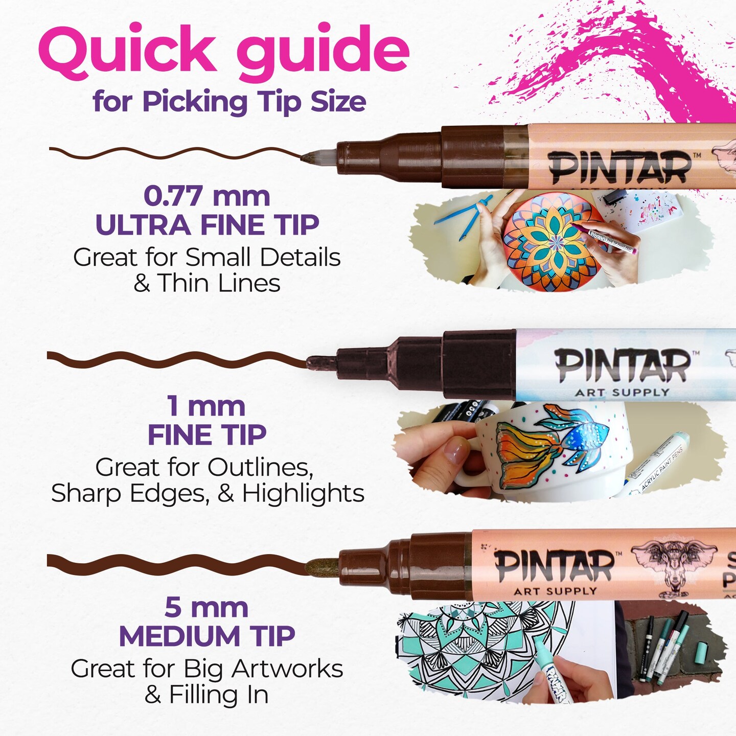 PINTAR Skin Tone Markers Extra Fine Tip - Skin Tone Watercolor Paint Pens - Skin Tone Acrylic Paint Markers - Acrylic Paint Pens for Rock Painting, Wood, Glass, Leather, Shoes - Pack of 20, 1mm