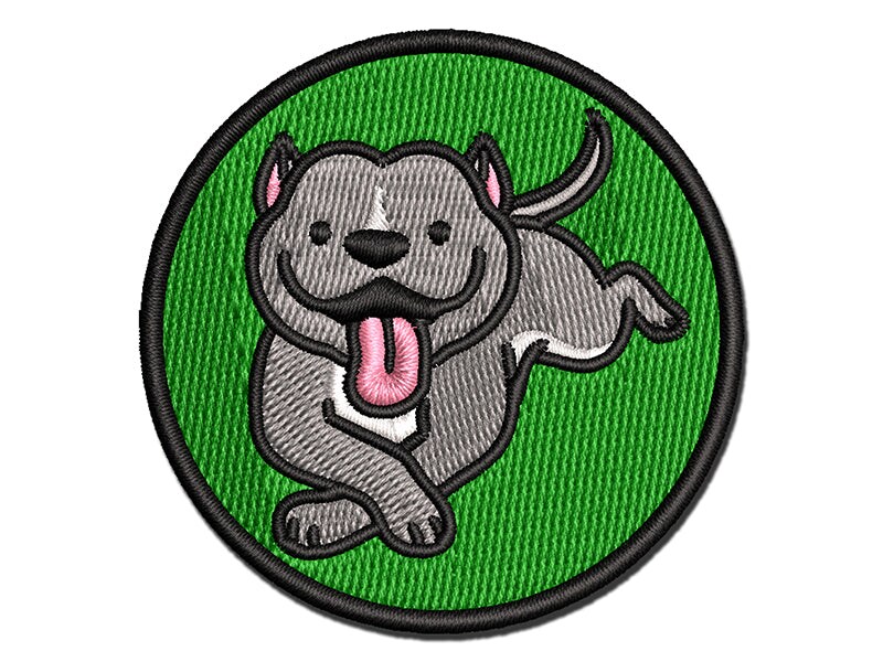 Pit Bull Happy Laying Down Dog Multi-Color Embroidered Iron-On or Hook & Loop Patch Applique