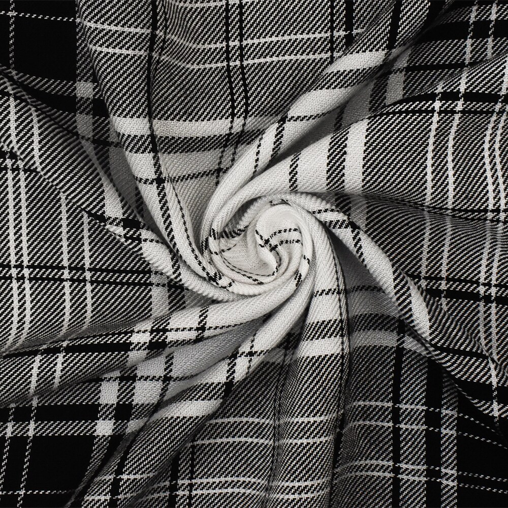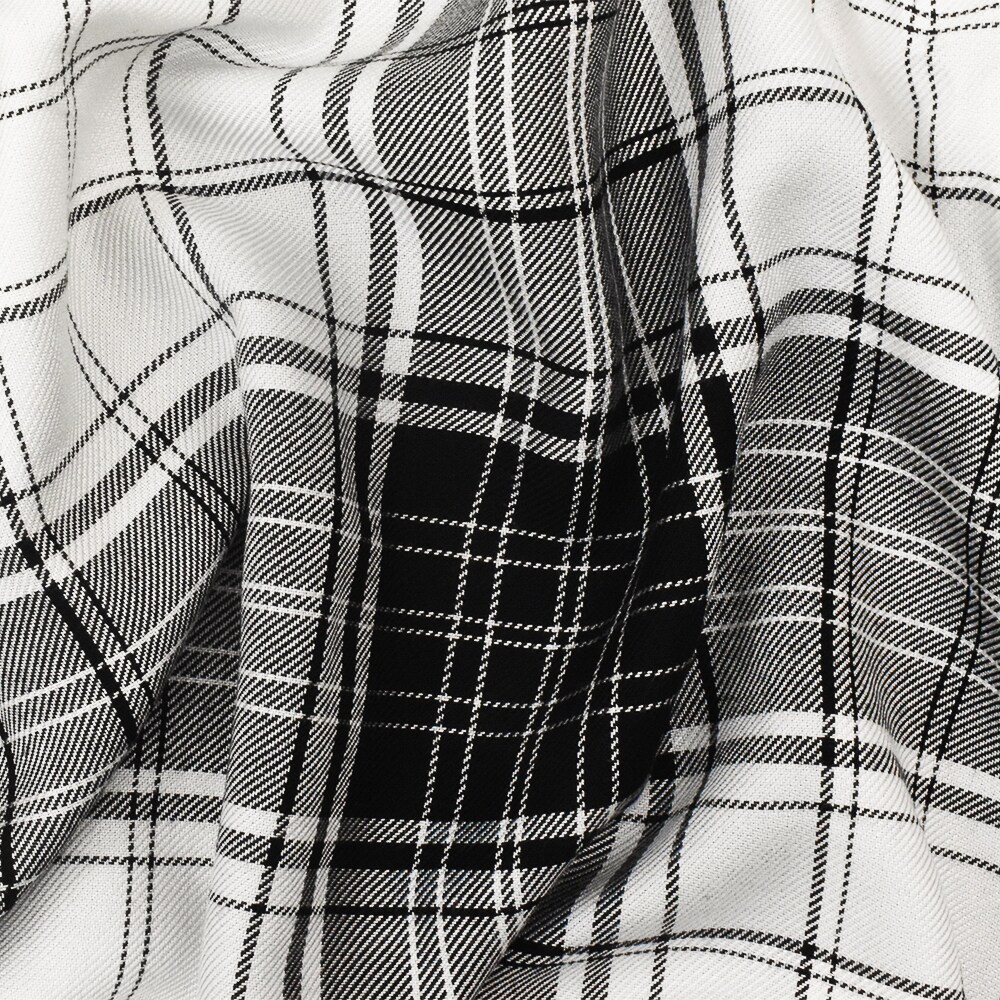 Pitch Black -White Plaid Rayon Twill Woven Fabric By the Yard