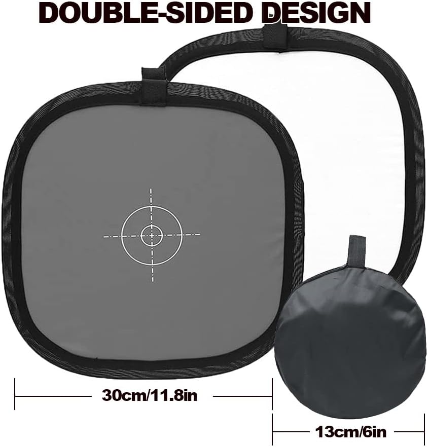 Pixiss Portable Photography Accessories - 12x12 Foldable White Balance Reflector, Grey Reference & White Balance Card, 4In1 Color Correction Card Set and Measuring Tape Lanyard by Pixiss