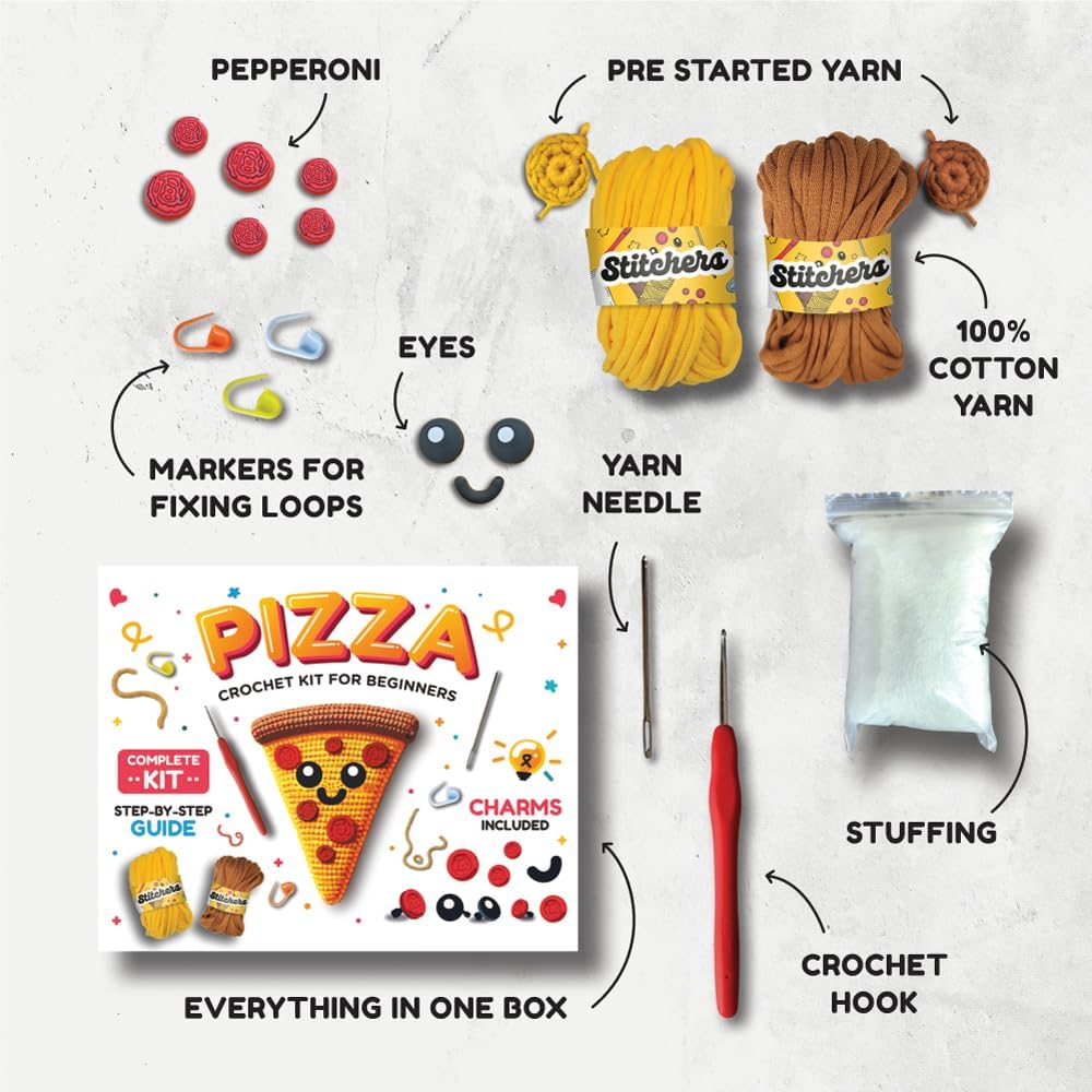 Pizza Crochet Kit for Beginners Kids and Adults (Beige) 6.62 x 4.75 x 0.75 inches