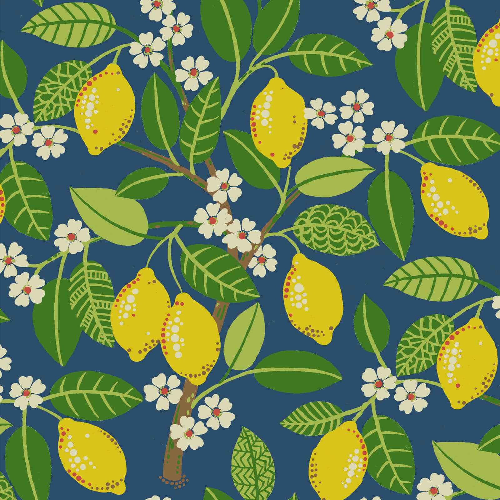 PKL Studio Indigo Lemon Tree Cotton Home Décor Fabric