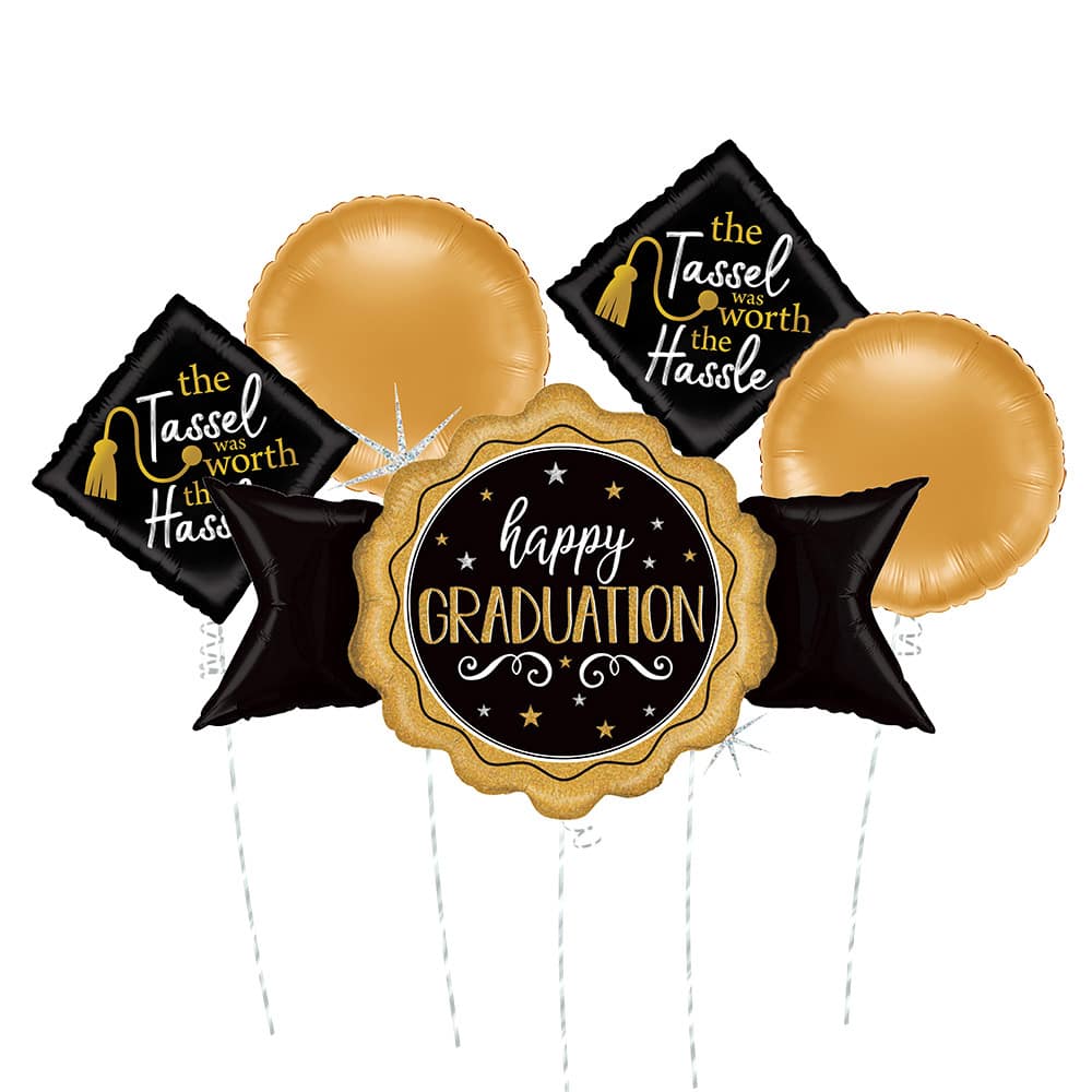 Black & Gold Graduation Seal Foil Balloon Bouquet