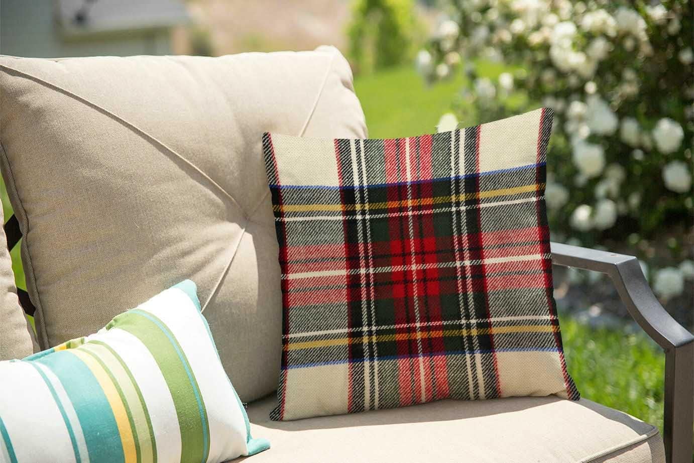 Plaid Pillow Cover 18x18 Inch, Scottish Tartan Red and White Wool Plaid Pattern Symmetric Square Print Double Sided Decorative Pillow Case Throw Pillows Cover