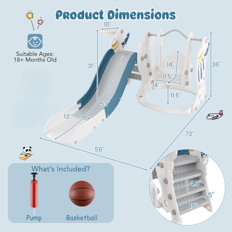Plastic 4-in-1 Kids Slide Swing Set Basketball Hoop