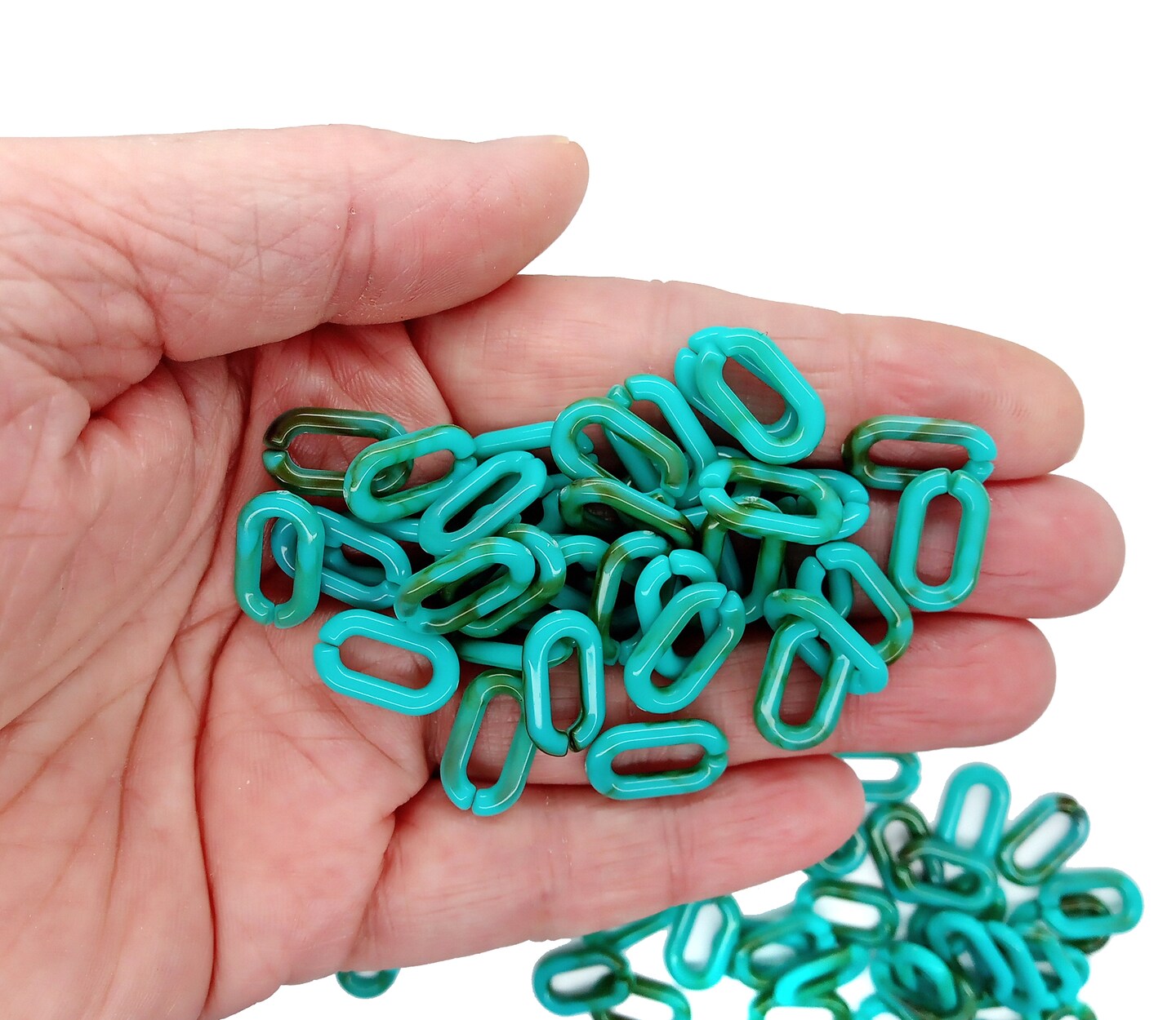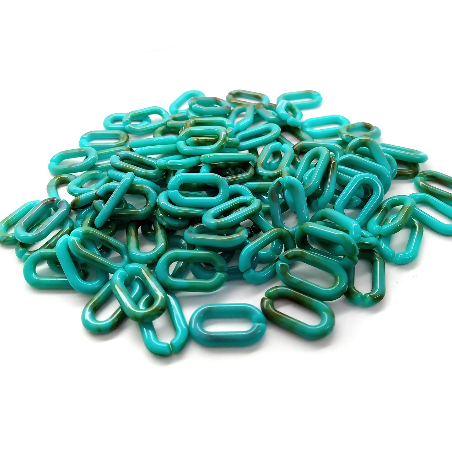Plastic Chain Links, 100 pcs, Turquoise/Teal Blue 18mm wide, Adorabilities