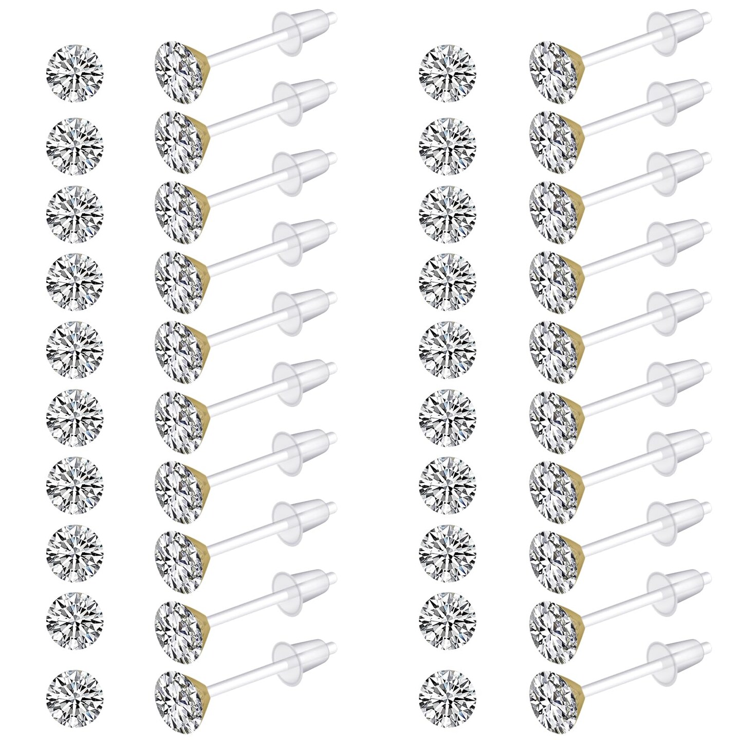 Plastic Earrings,80pcs Cubic Zirconia Earrings for Gril, medical grade plastic Post earrings for sensitive ears, 3mm stud for women hypoallergenic