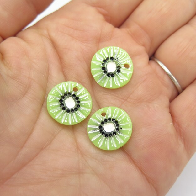 Plastic Green Kiwi Slice Charm (K366) (4x)