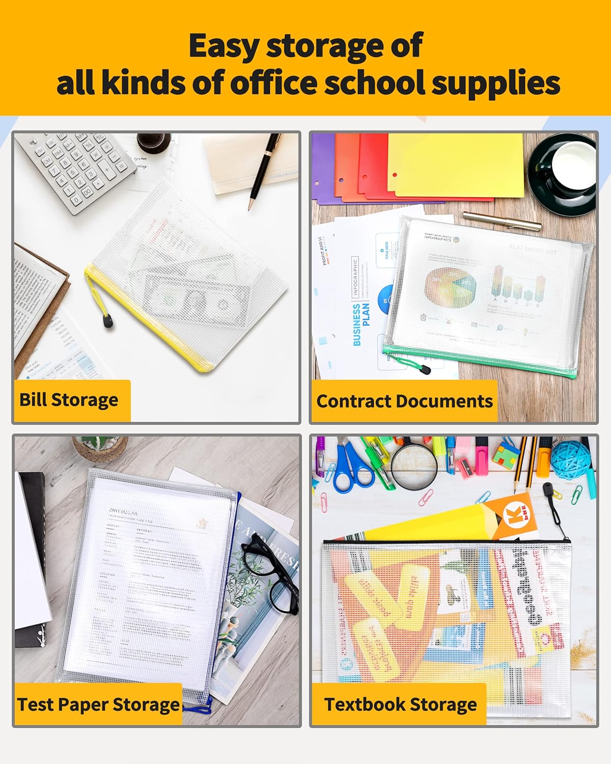 Plastic Mesh Zipper Pouch 6 Colors, 12 Packs (Multicolored)