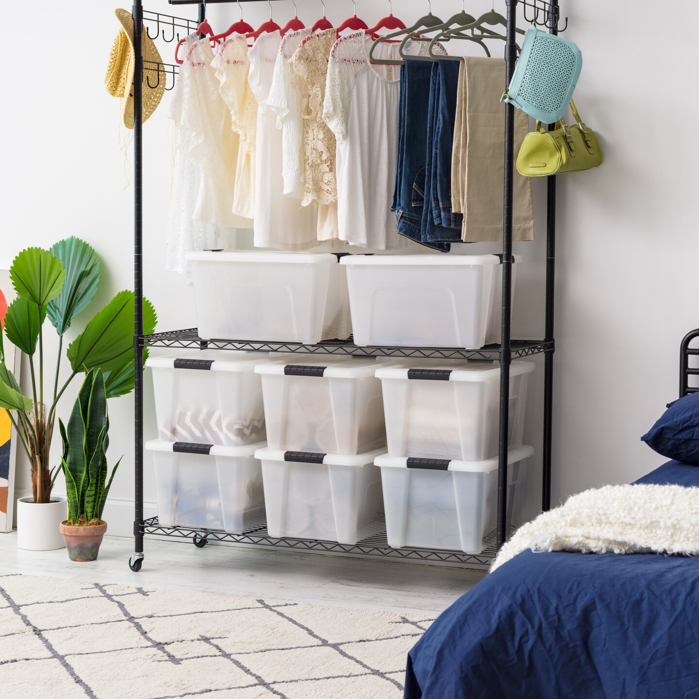 Plastic Storage Bins with Lids and Secure Latching Buckles Natural - 8 Pack