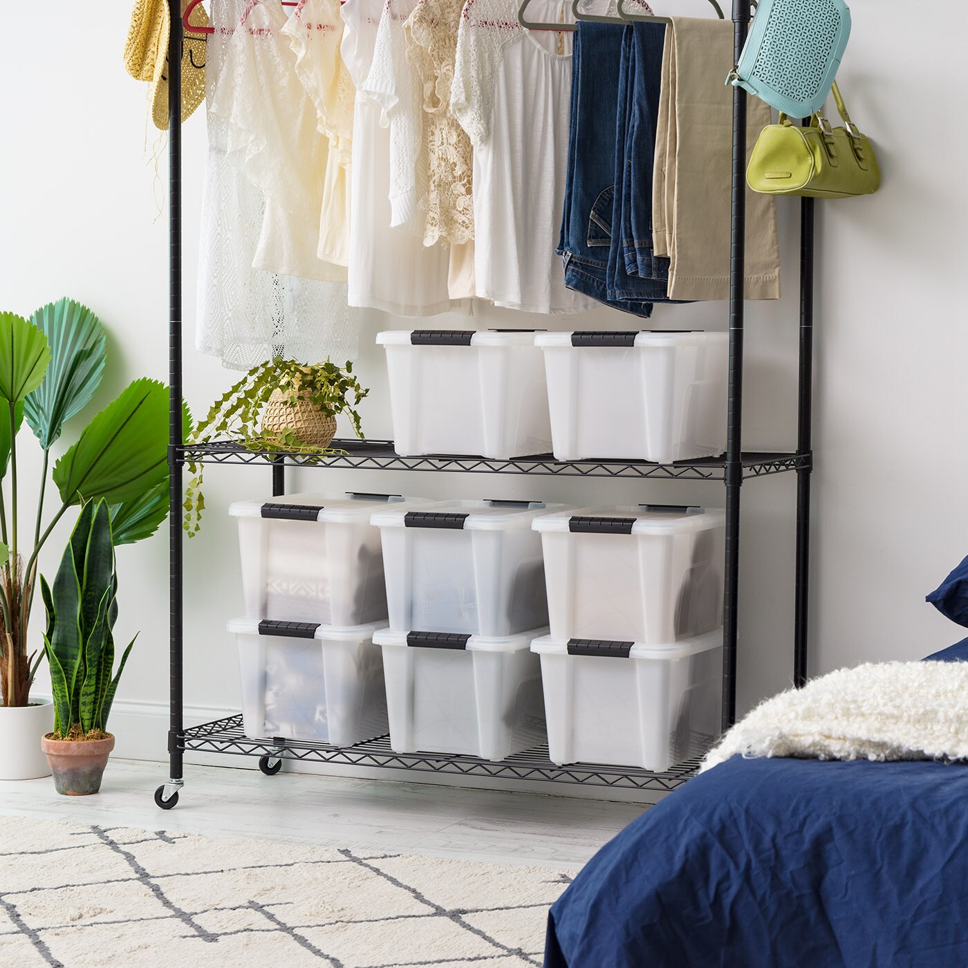Plastic Storage Bins with Lids and Secure Latching Buckles Natural - 8 Pack