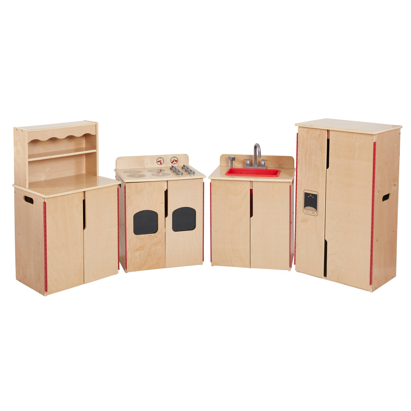 Play Kitchen Cupboard, Stove, Sink, and Refrigerator, 4-Piece