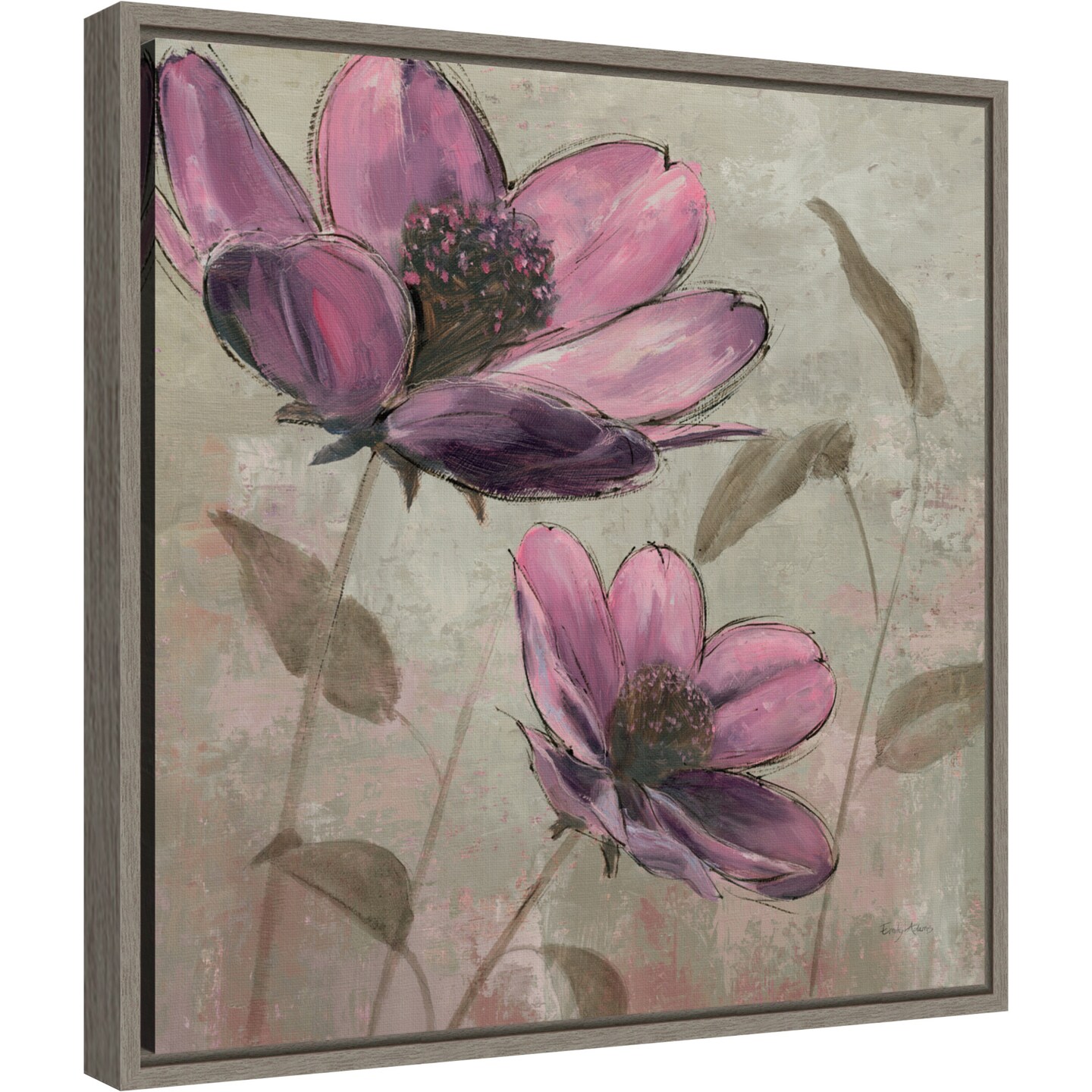 Plum Floral II by Emily Adams 16-in. W x 16-in. H. Canvas Wall Art Print Framed in Grey