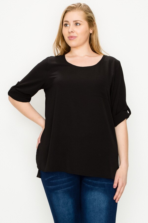 Plus Size Koshibo Roll Up Sleeve Top