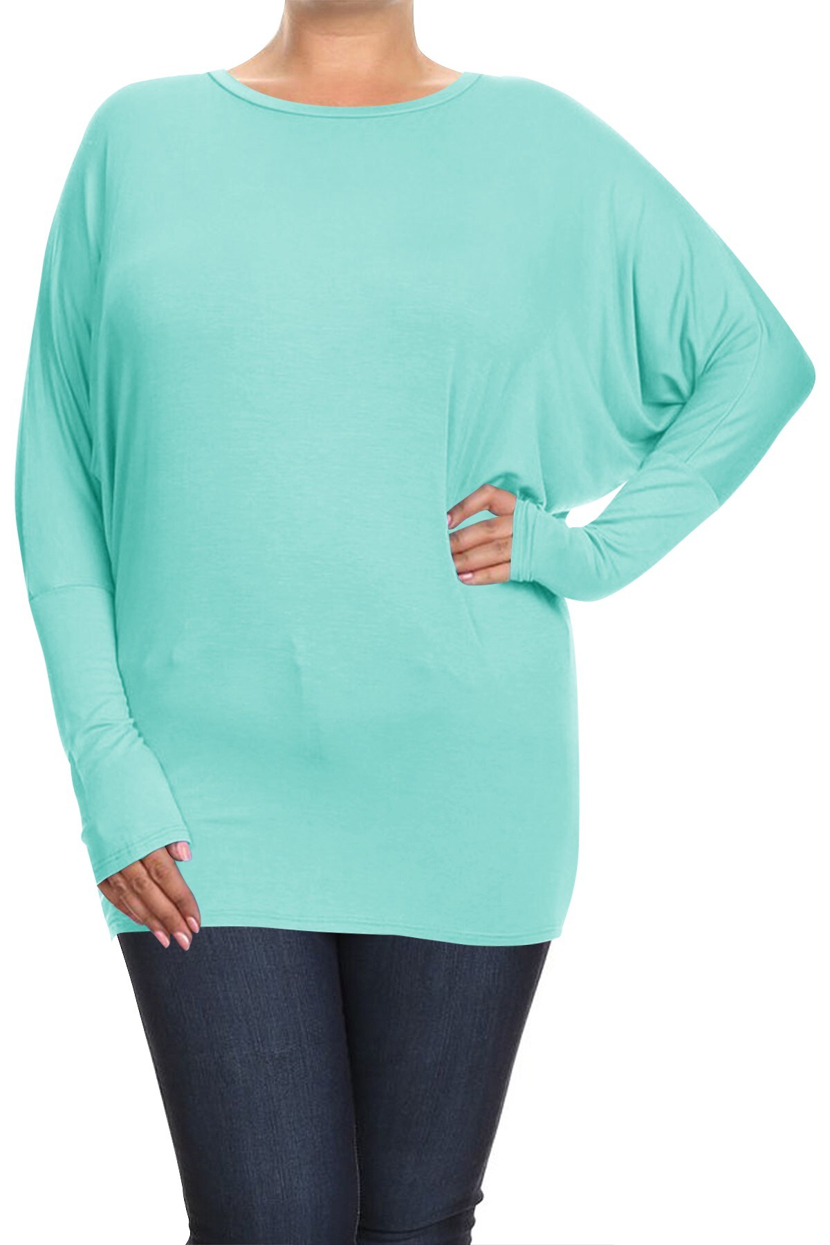 Plus Solid Jersey Knit Dolman Top Long Sleeves | RADYAN®