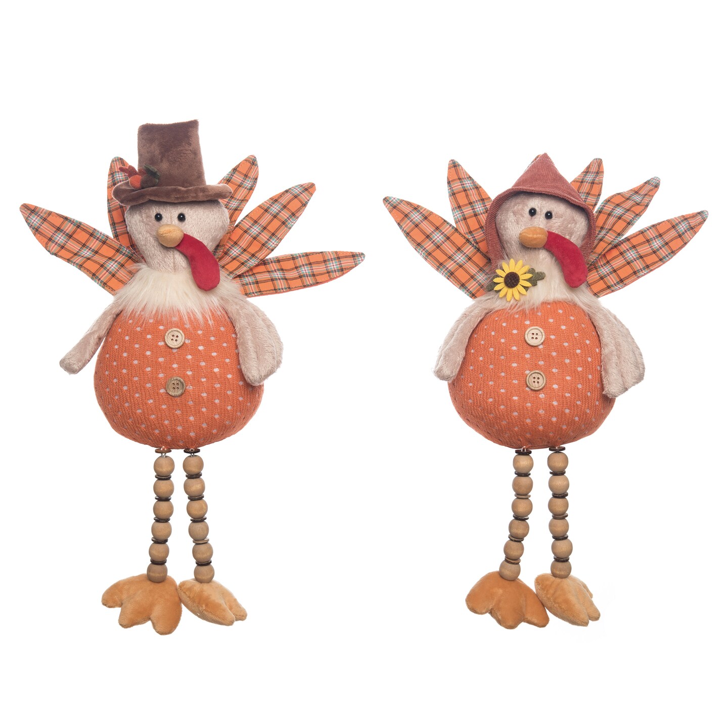 Plush Turkey Shelf Sitter Decorative Figurine for Fall Decor