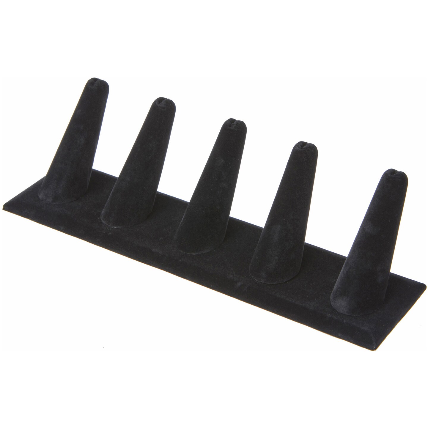 Plymor Black Velvet Ring Finger Display, Five on Rectangular Base, 8" W x 2.125" D x 2.5" H
