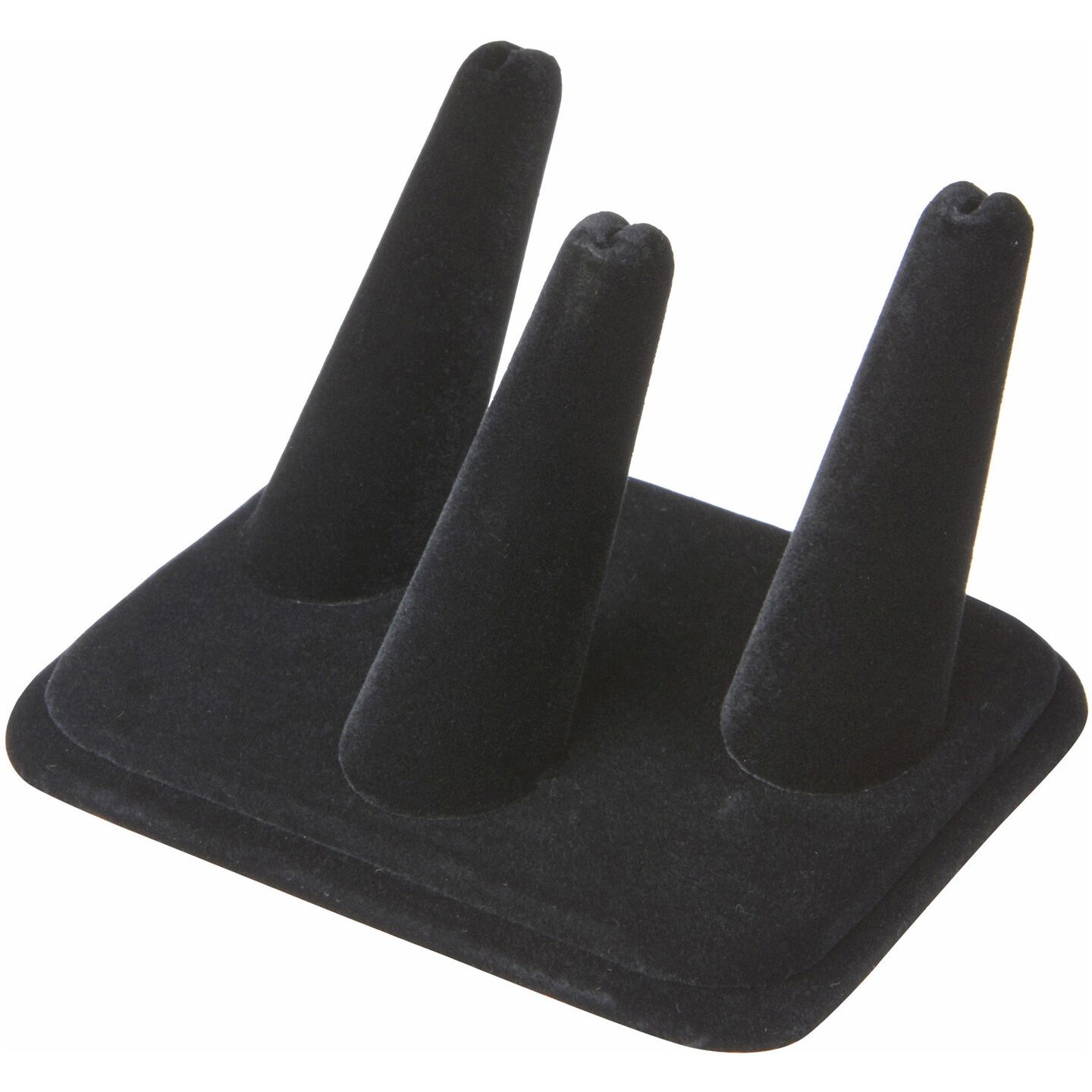 Plymor Black Velvet Ring Finger Display, Three on Rectangular Base, 4.125" W x 3.25" D x 2.25" H