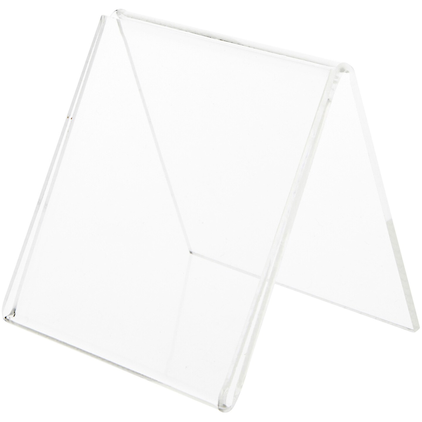 Plymor Clear Acrylic Folded A-Frame Holder for 1 Sign or Photo, 3.5" H x 3.5" W x 3" D