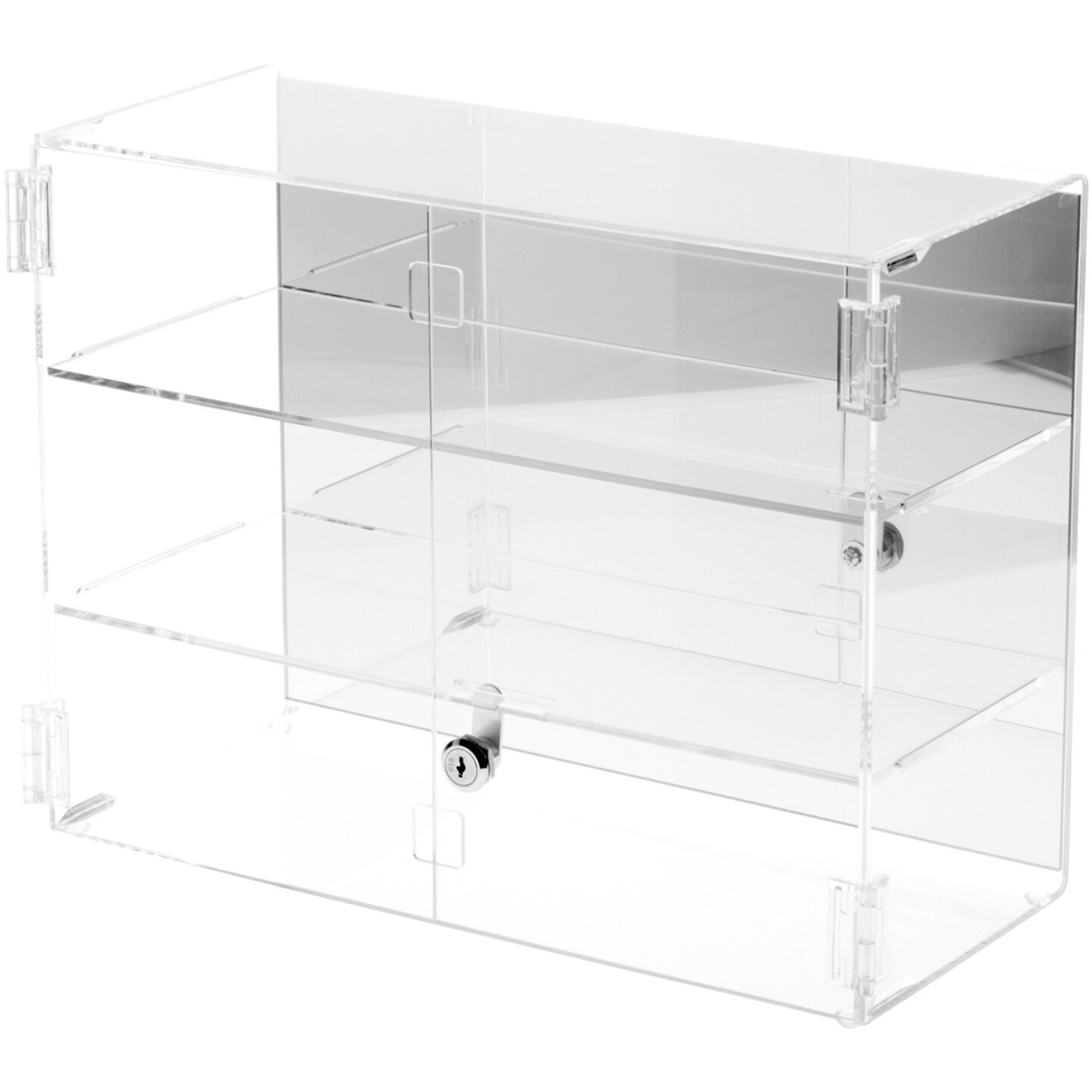 Plymor Clear Acrylic Rectangular Locking Display Case, 2 Shelves (Mirrored)