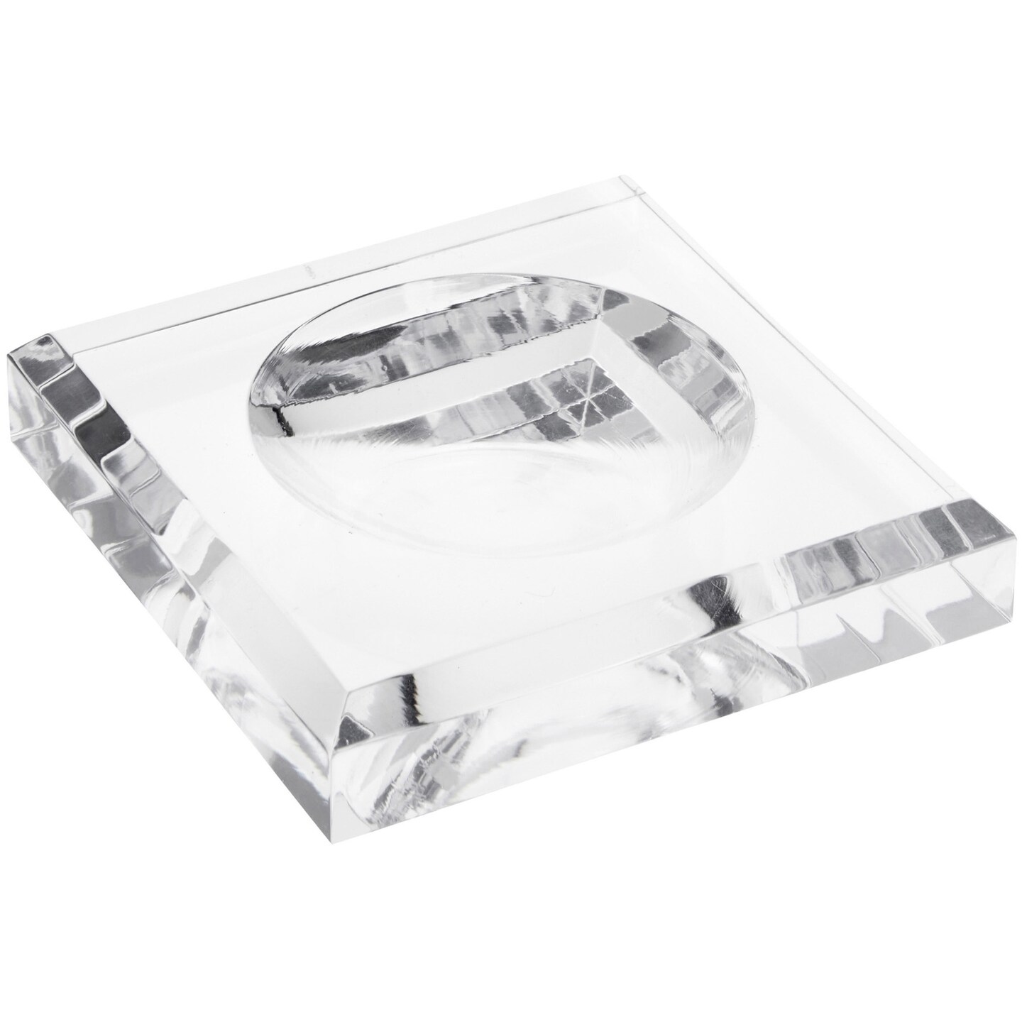Plymor Clear Acrylic Square Display Base with Indented Circle to Hold Egg, Marble, Ball or Sphere, 3.5" W x 3.5" D x 0.75" H (2.5" Circle)