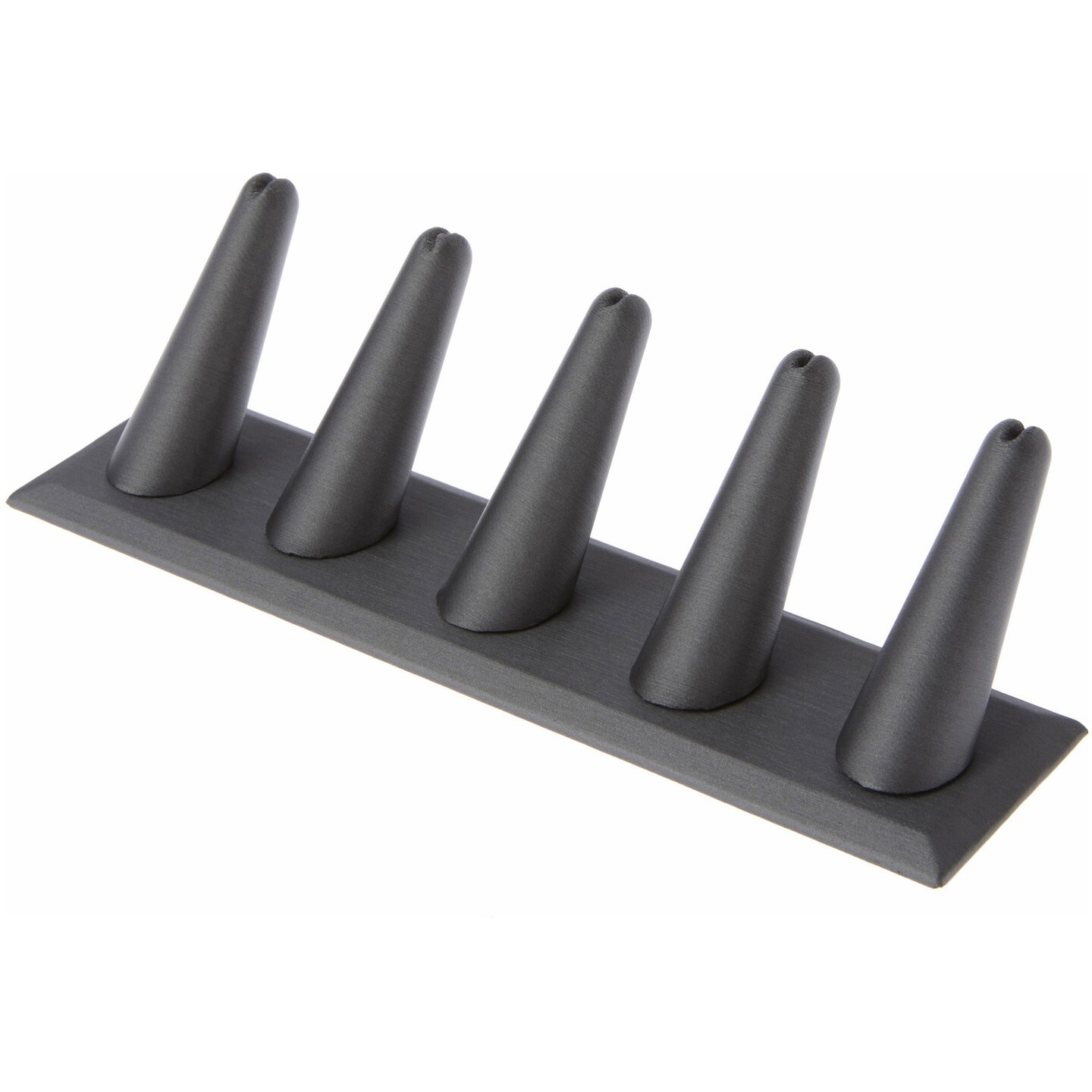 Plymor Gray Faux Leather Ring Finger Display, Five on Rectangular Base, 8" W x 2.125" D x 2.5" H