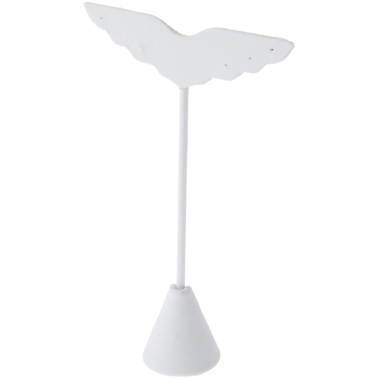 Plymor White Faux Leather Wing Shaped, Three Pair Earring Display Stand, 3" W x 1.25" D x 5.5" H