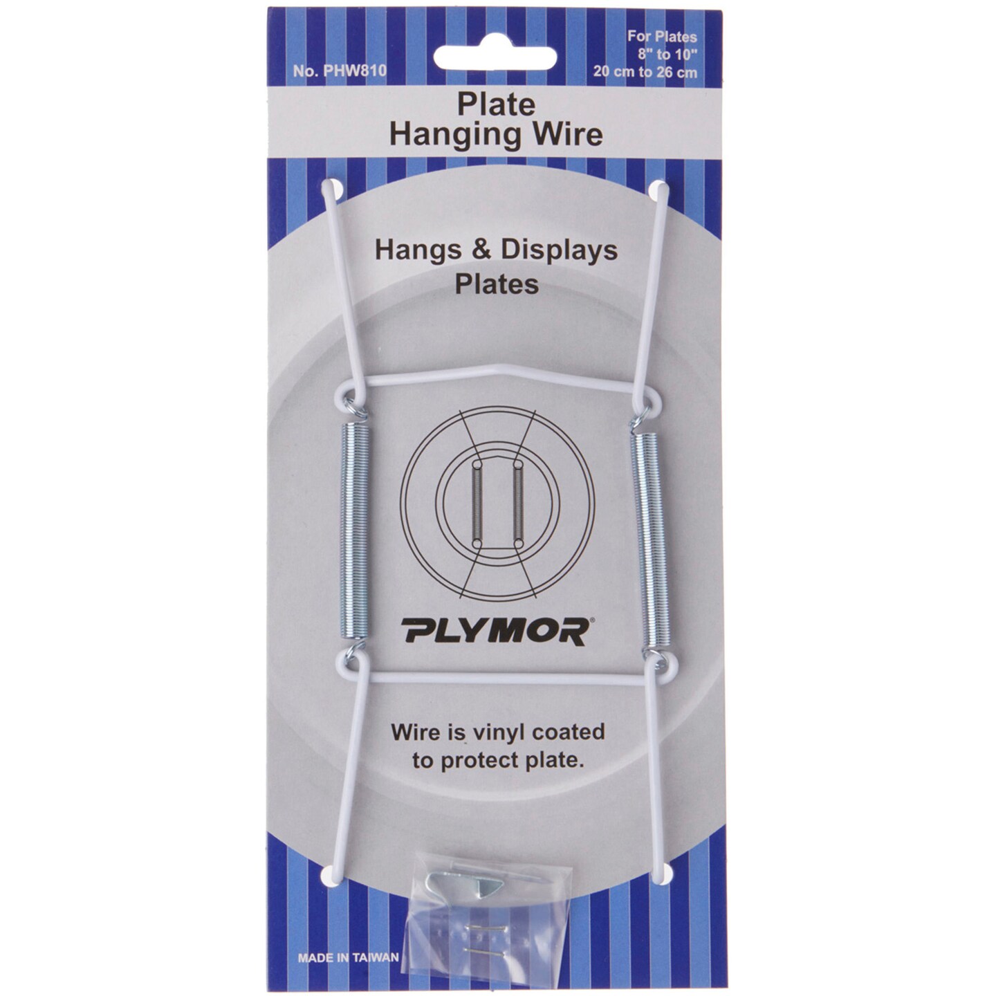 Plymor White Vinyl Finish Wall Mountable Plate Hanger, 6.125" H x 3" W x 0.5" D (For Plates 8" - 10")