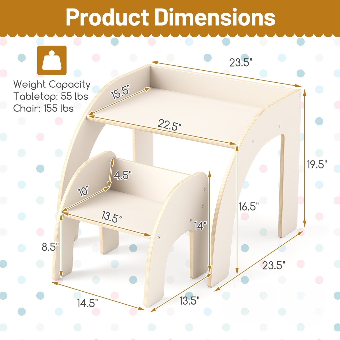 Plywood Kids Table and Chair Set with Spacious Safe Design and Ergonomic Seat