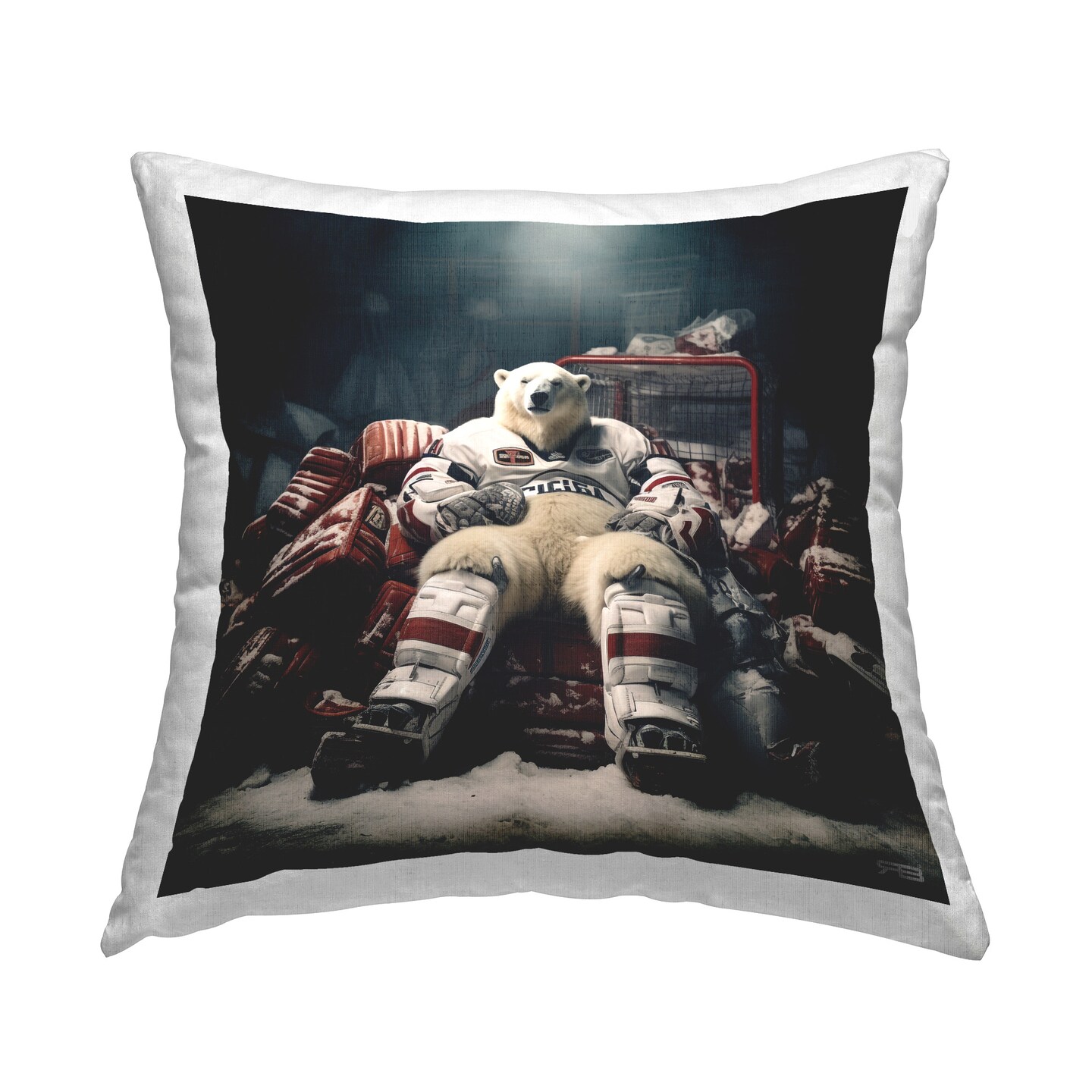 Polar Bear Hockey Player Design by RB Throw Pillow