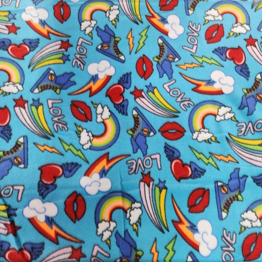 Polar Fleece Star Rainbows Light Blue 3 Yard Pre-Cut Fabric