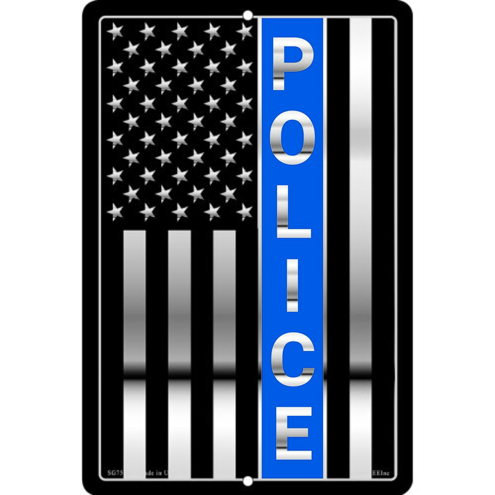 Police Thin Blue Line American Flag Aluminum Wall Sign 8"x12"