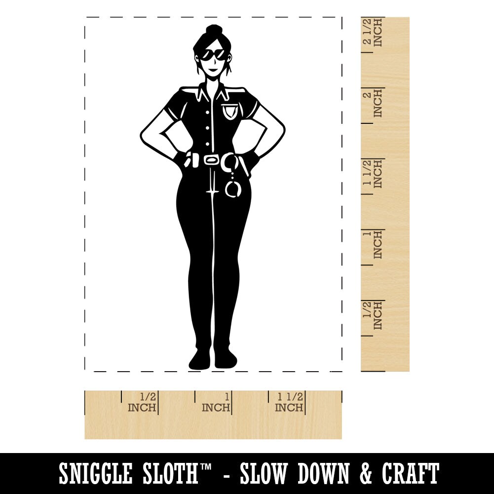 Police Woman Officer Cop Rectangle Rubber Stamp for Stamping Crafting