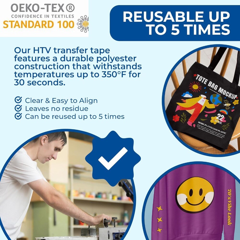 Politape POLI-TACK Craft Transfer Tape for Heat Vinyl - Iron on Clear Transfer Tape for Printable and Patterned Htv, Indoor & Outdoor Adhesive Vinyl - Reusable Up to 5 Times, Medium Tack (15" x 30 Yds) (38 Cms X 27 Mts) 854