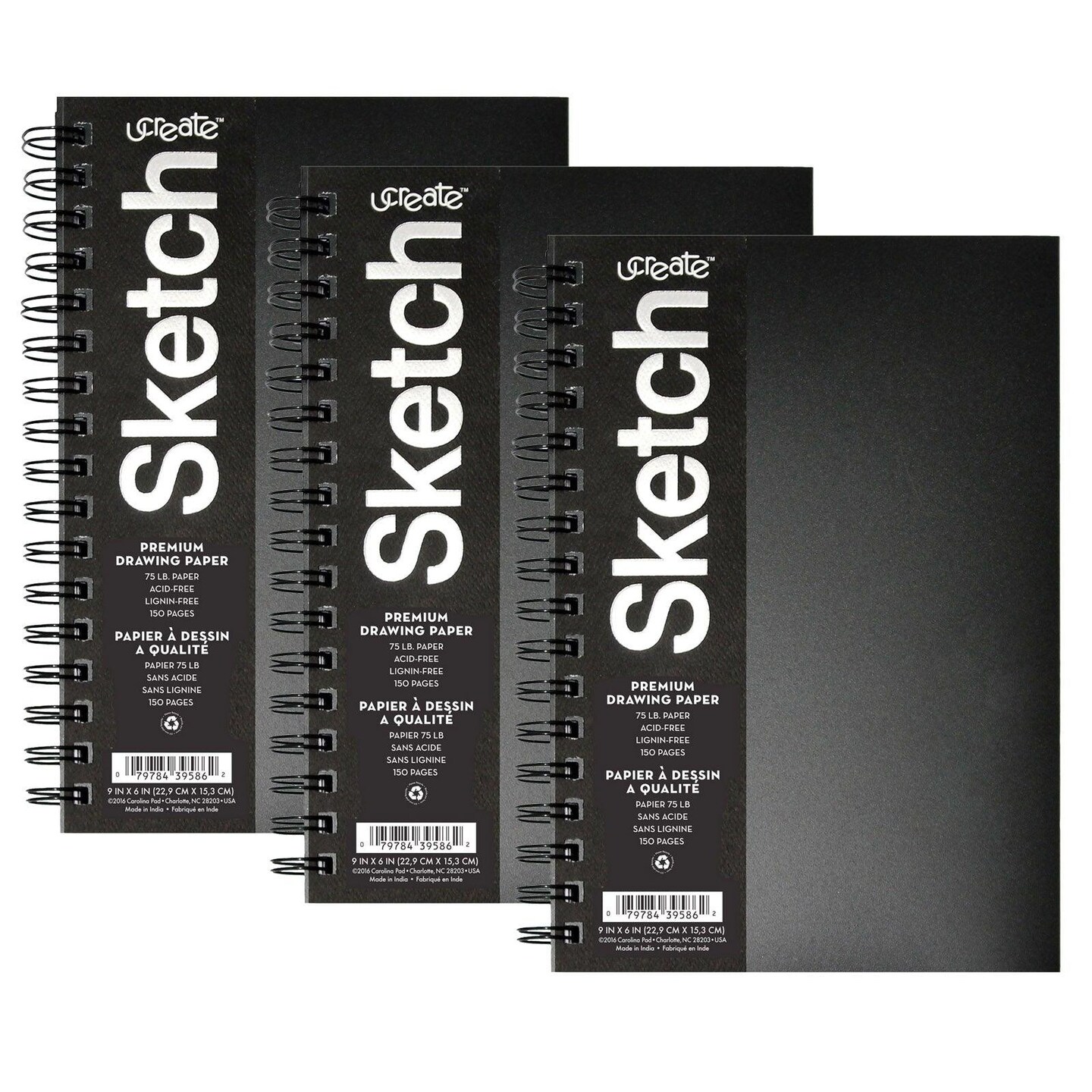 Poly Cover Sketch Book, Heavyweight, 9" x 6", 75 Sheets, Pack of 3