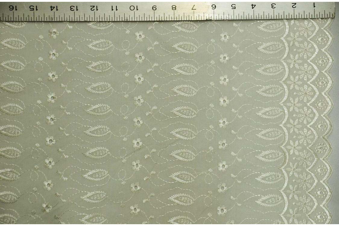 Polyester Cotton Eyelet Embroidery Fabric Double Sided Scallop Border Soft Lightweight 45 Inch Wide