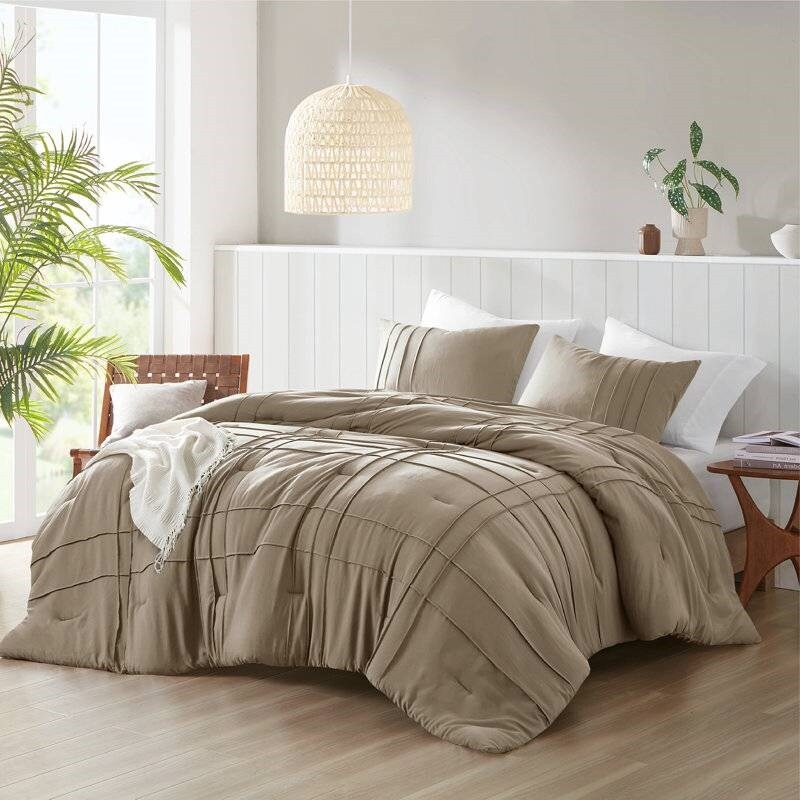 Polyester Pinch Pleat Comforter Set with Matching Shams