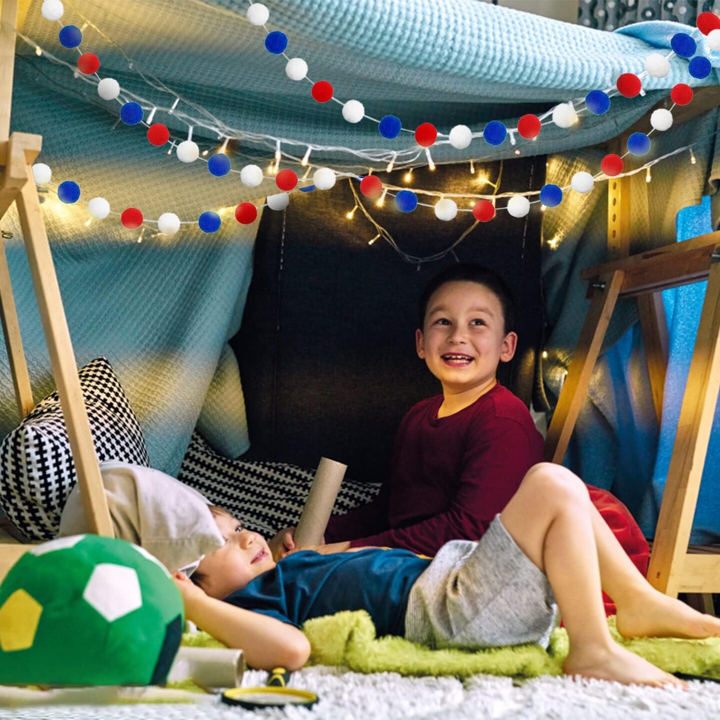 Pom Pom Garland 4th of July Decorations, Patriotic Red White Blue Felt Ball Garland, 3-Pack 6.6ft Long 24 Cute Pompom Balls String, Christmas Tree Decor Ornaments for Home Birthday Holiday Party