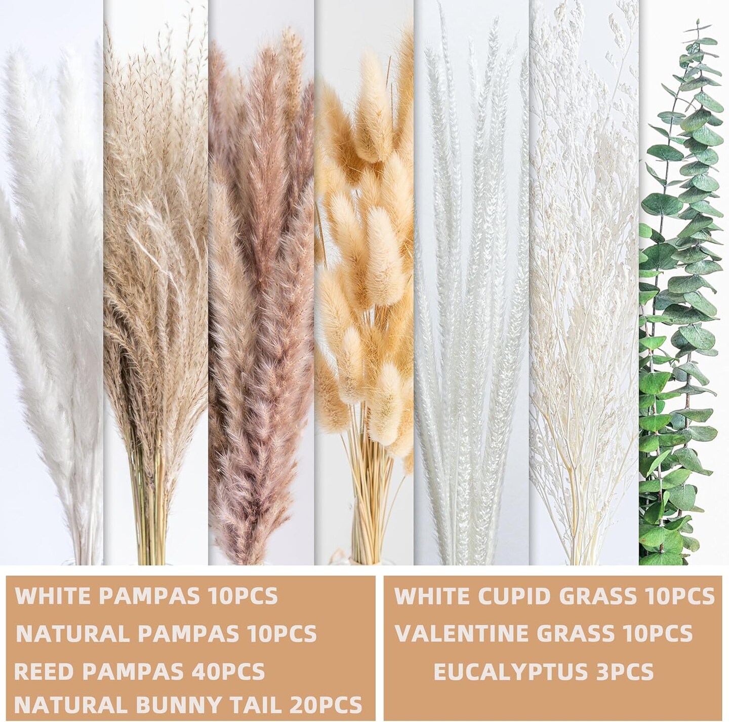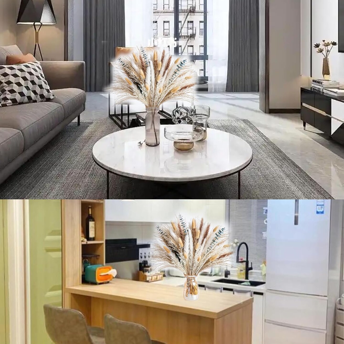 pompas Grass Dried Flowers Arrangement for Centerpiece Table Decor(White,green,yellow,red,beige)