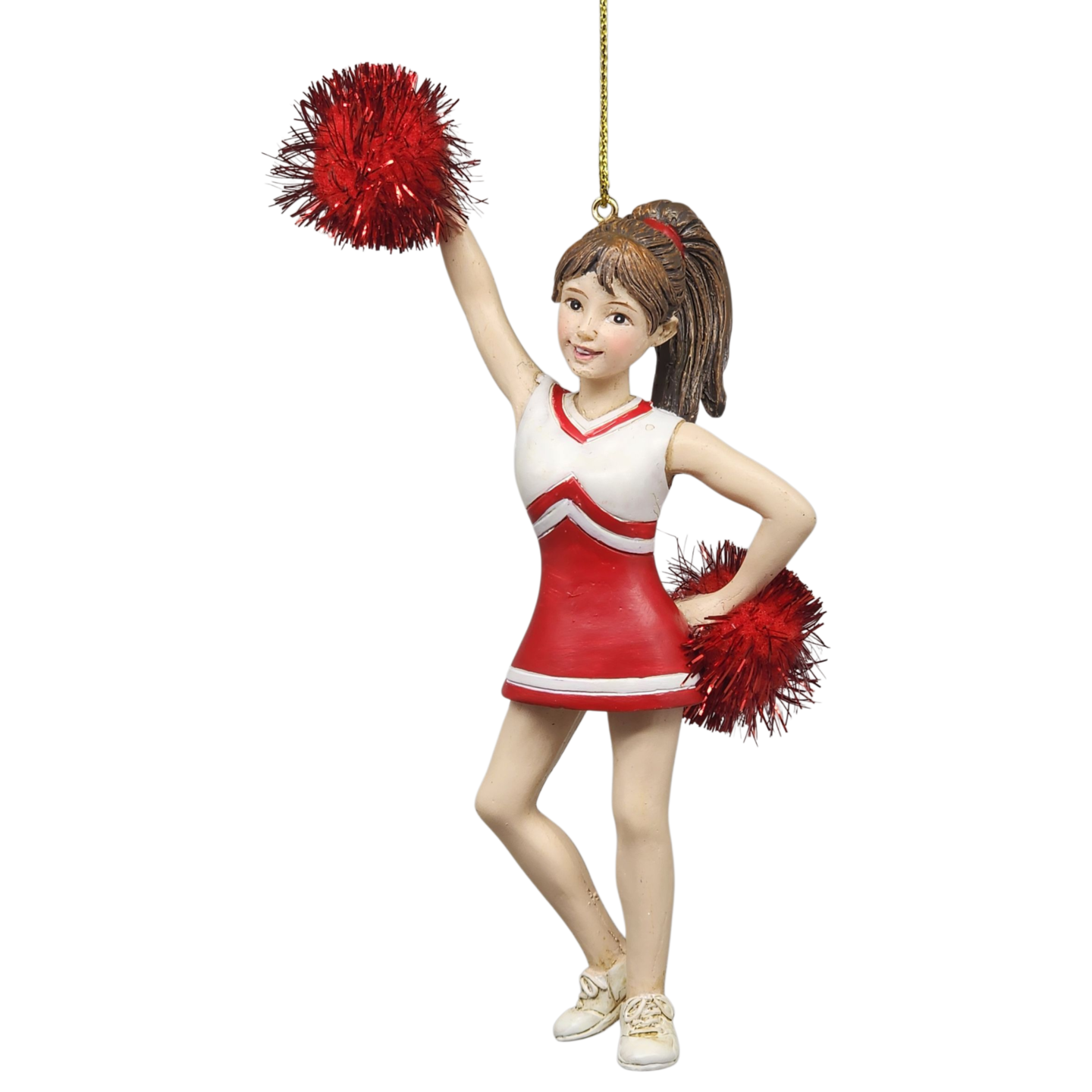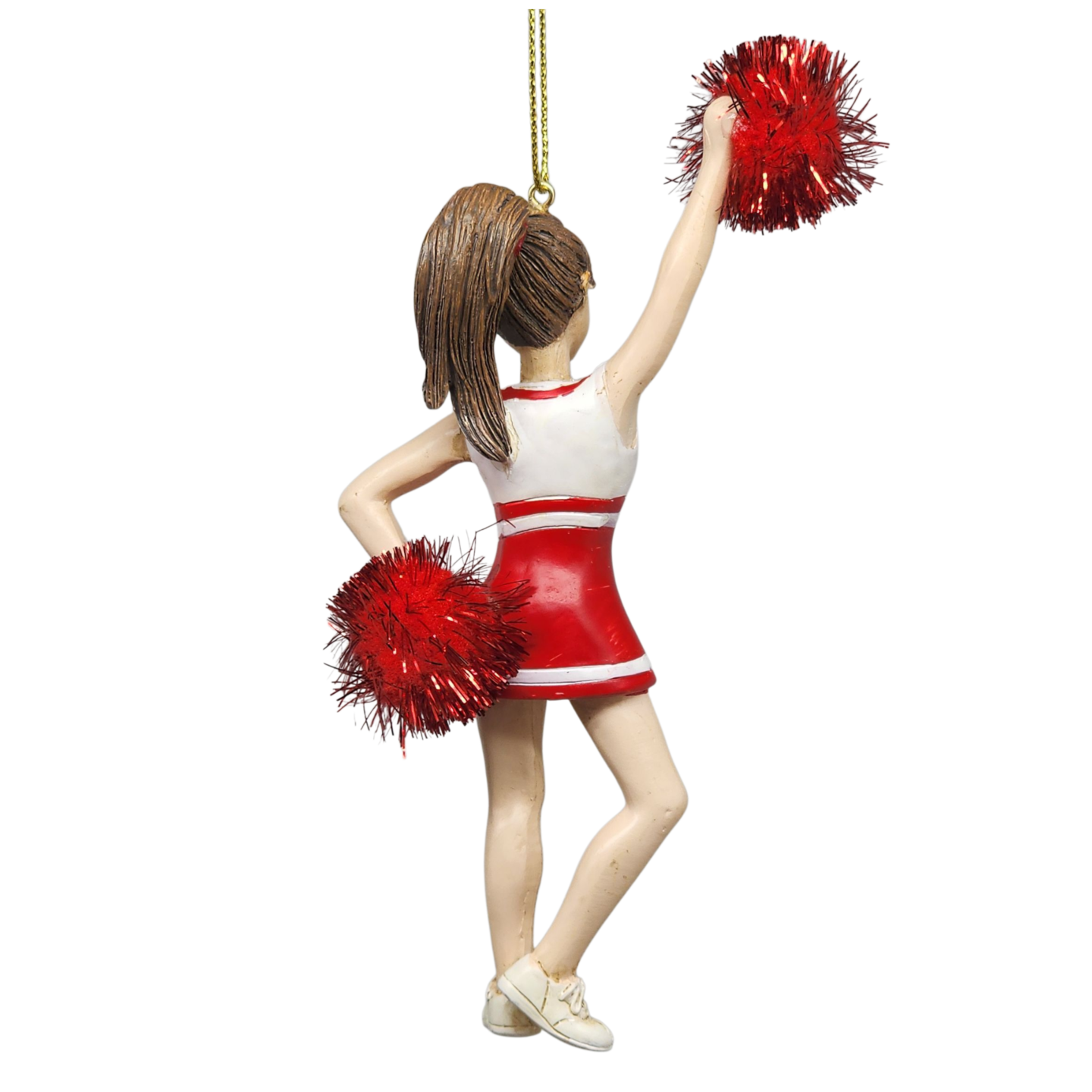 Pom-Pom Cheerleader Ornament - Red - 5.5 Inches