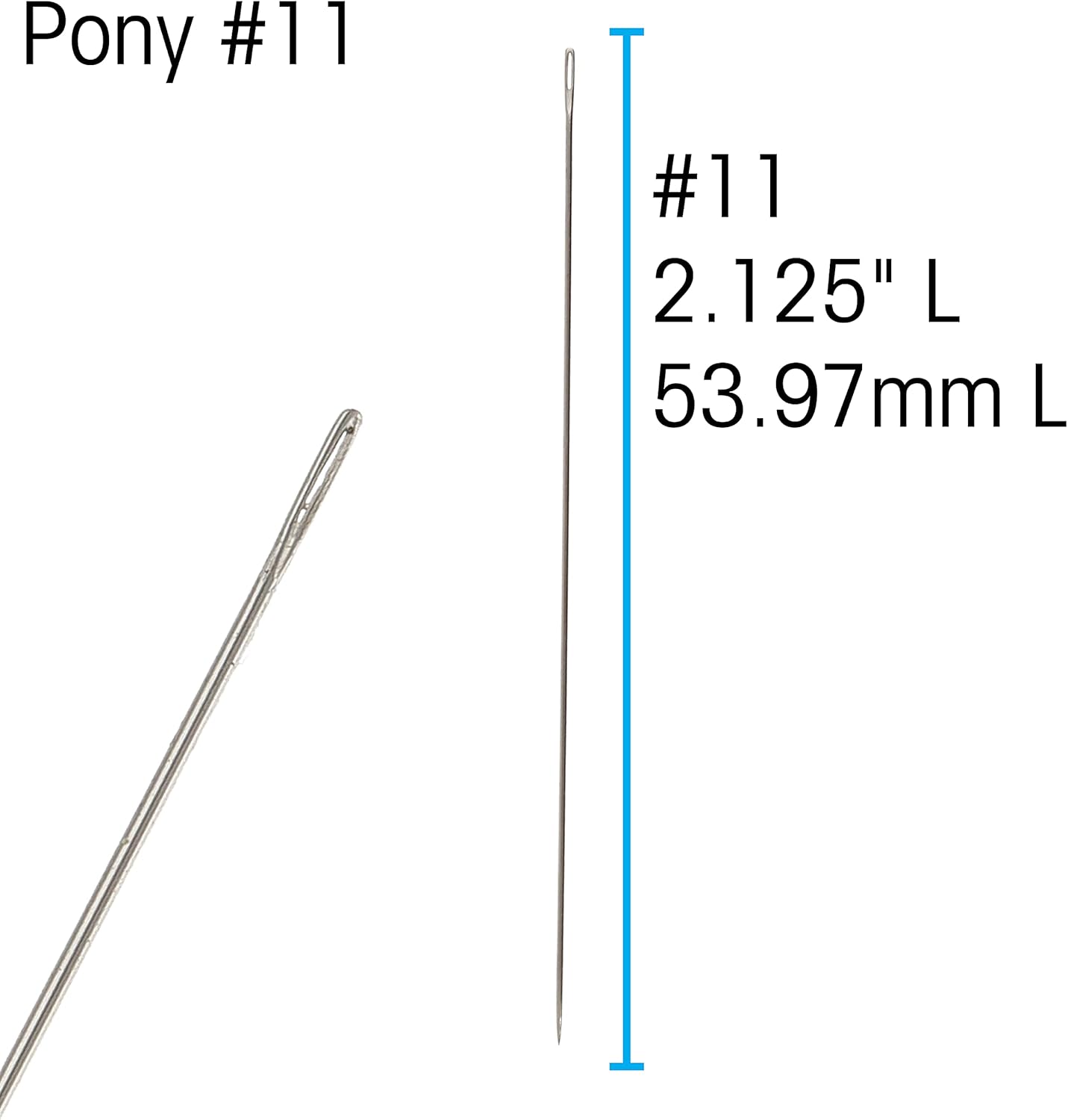 Pony Beading Needles, Size 11, Pack of 6, 2 Inches, Made in India, Use for Loom Weaving Beadwork, Off-Loom Stitching and Jewelry Making with Seed Beads