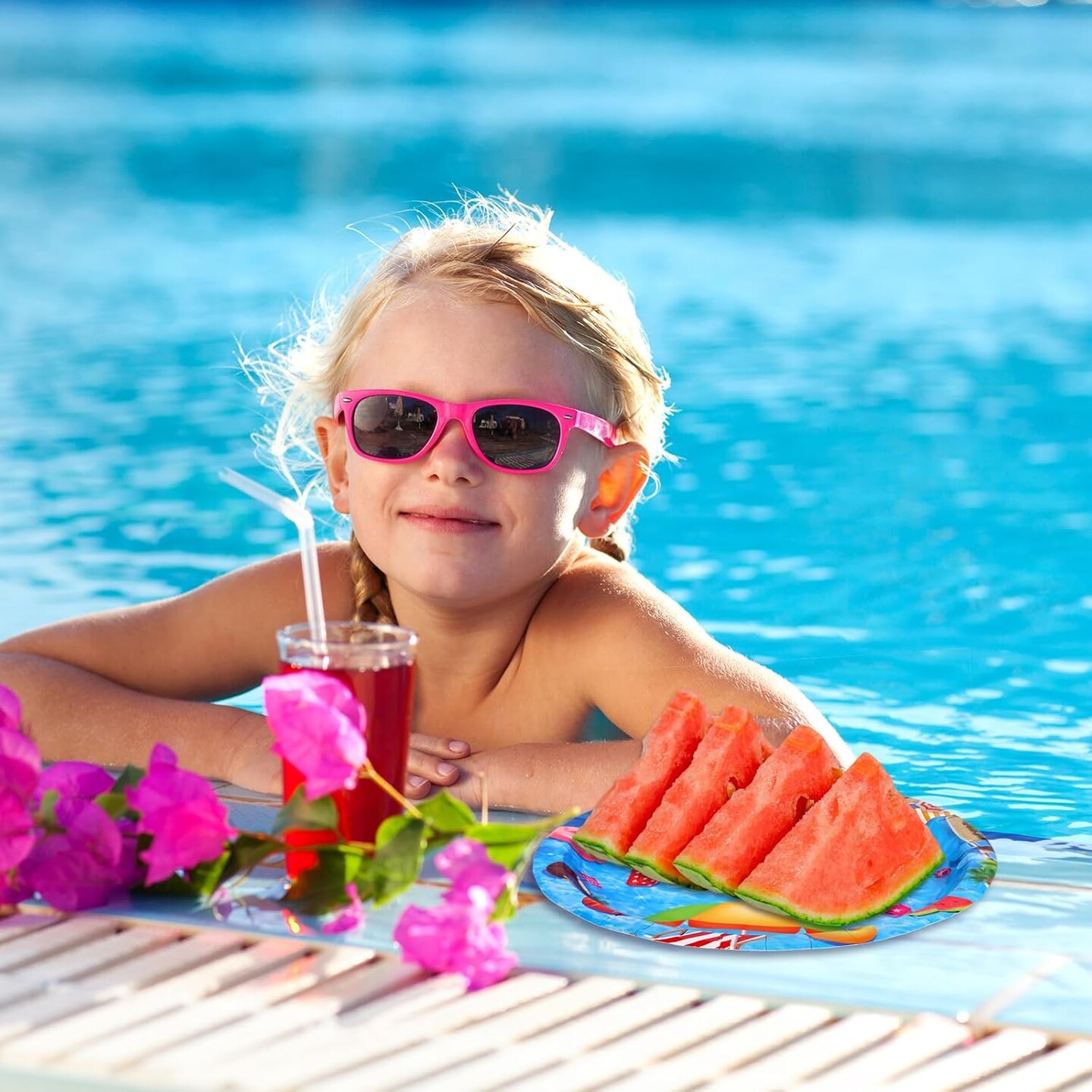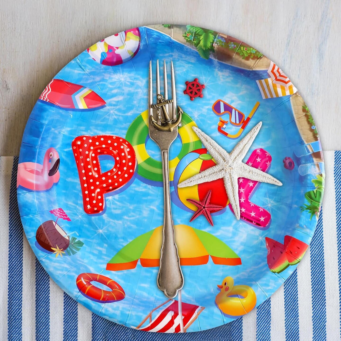 Pool Party Plates Summer Beach Paper Plate for Tropical Theme Decoration