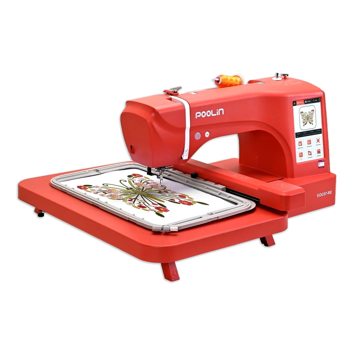 POOLIN EOC07 7.9in x 15in Embroidery Machine with 86 Embroidery Spools - Red