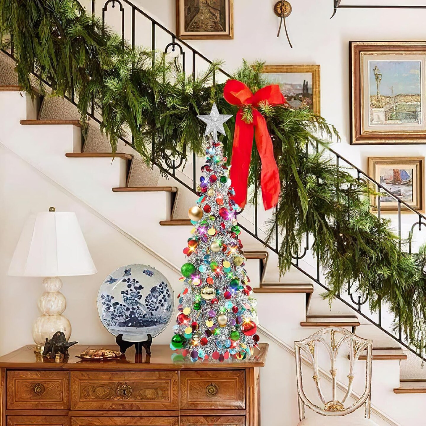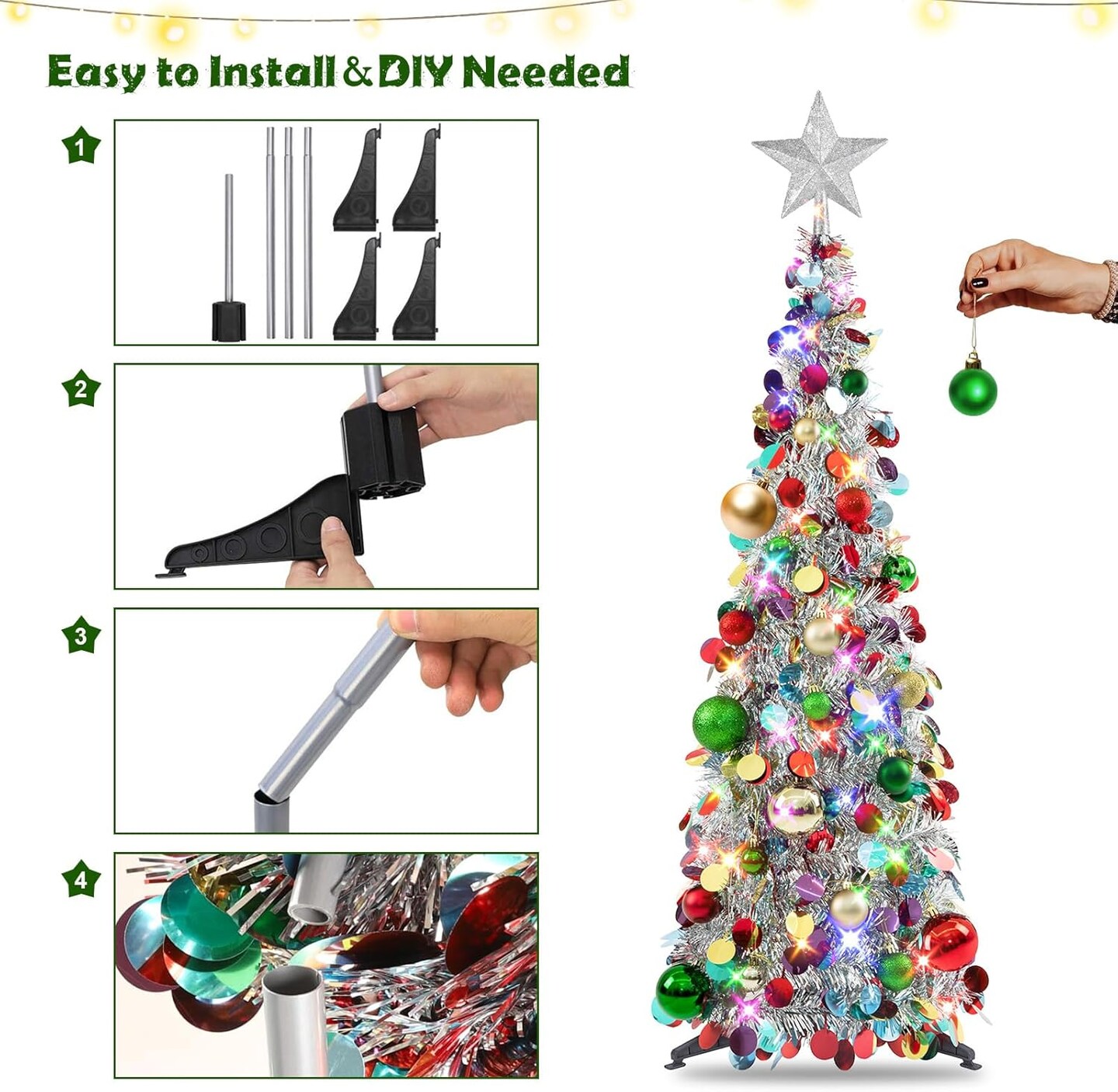 Pop Up Christmas Tree with Lights & 25 Balls (Silver) 15"D x 15"W x 36"H