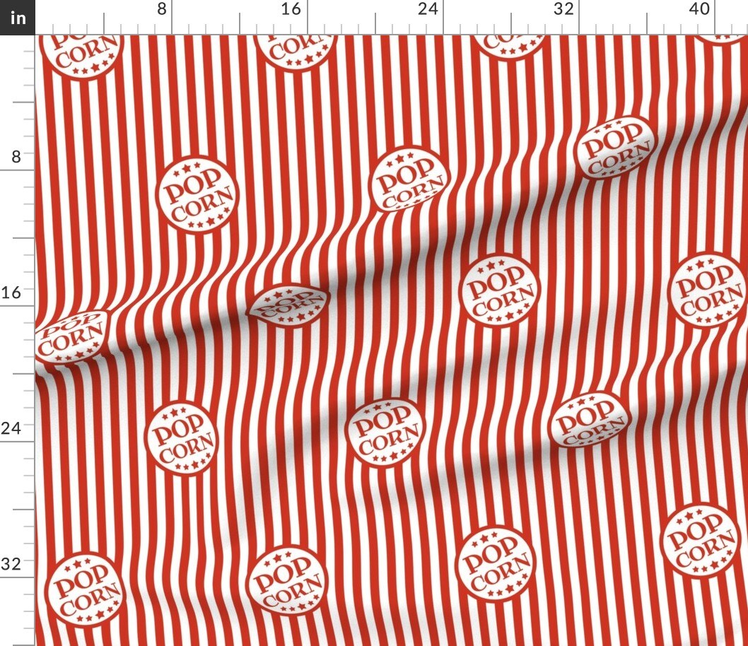 Popcorn, Movie, Box, Stripes, Red, White, Theater, Vintage, Fair, Circus Custom Printed Fabric by Spoonflower Various Fabrics by the Yard or Fat Quarter